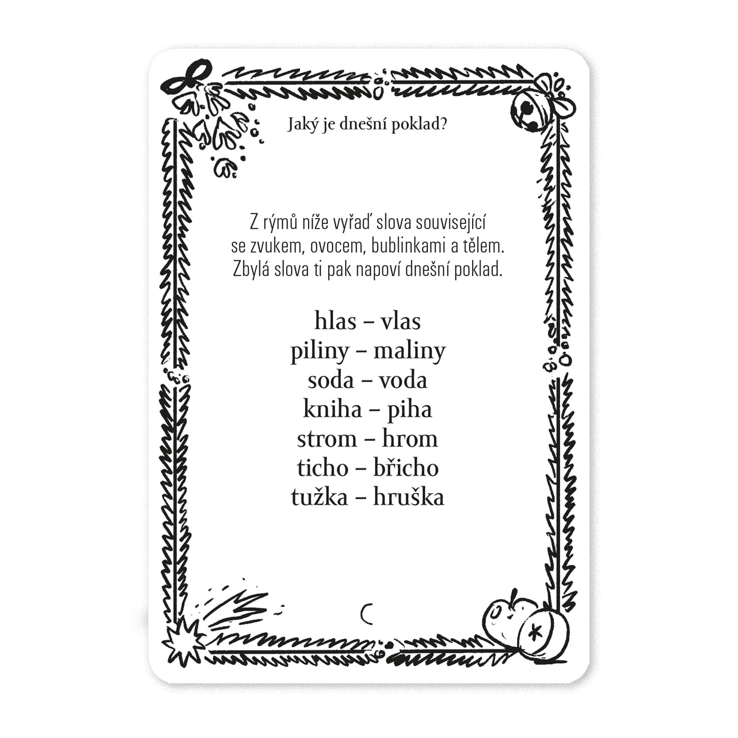 Karty je možné používať v akomkoľvek poradí. Ku každej hádanke je z druhej strany karty pomocník av priloženom zozname potom aj riešenie.