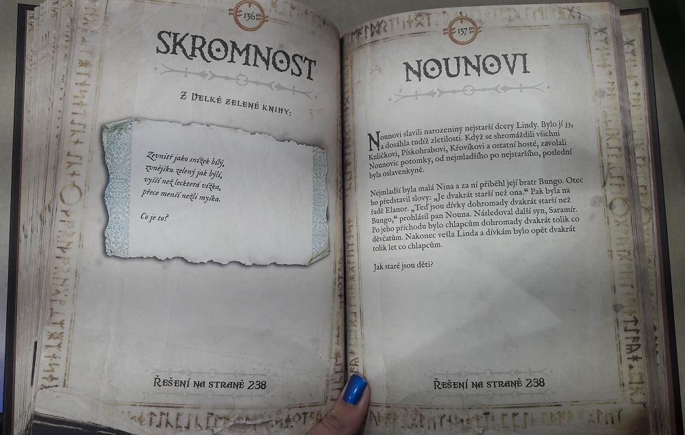 Na každé stránce hádanka, třeba i matematická... Jsem opravdu nadšený. Hned první hádanka mě dostala. V knížce jsou i obrázky, které naleznete i v knížce TOLKIENŮV SVĚT.