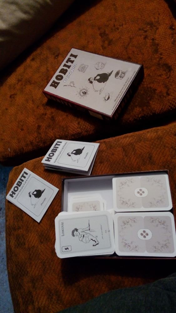 Je toto hodnotenie prínosné? ÁNOUcelené vydání humorné parodie na národ půlčíků v krásné pevné krabici. Se základní hrou dostanete rovnou i její rozšíření. Dohromady tak máte pořádnou nálož karet a můžete se pustit do stavění svých nor, pijatik a žranic. Ale pozor, může na vás také přijít Starosta a pěkně vás usměrnit nebo se pořádně leknete Fujtajblovýho velkýho pavouka. Samozřejmě vyhrává ten Hobit, který si dokáže nejvíc užívat života.
