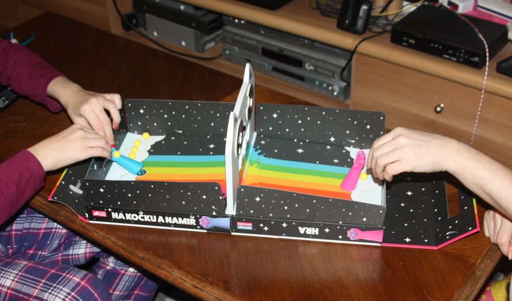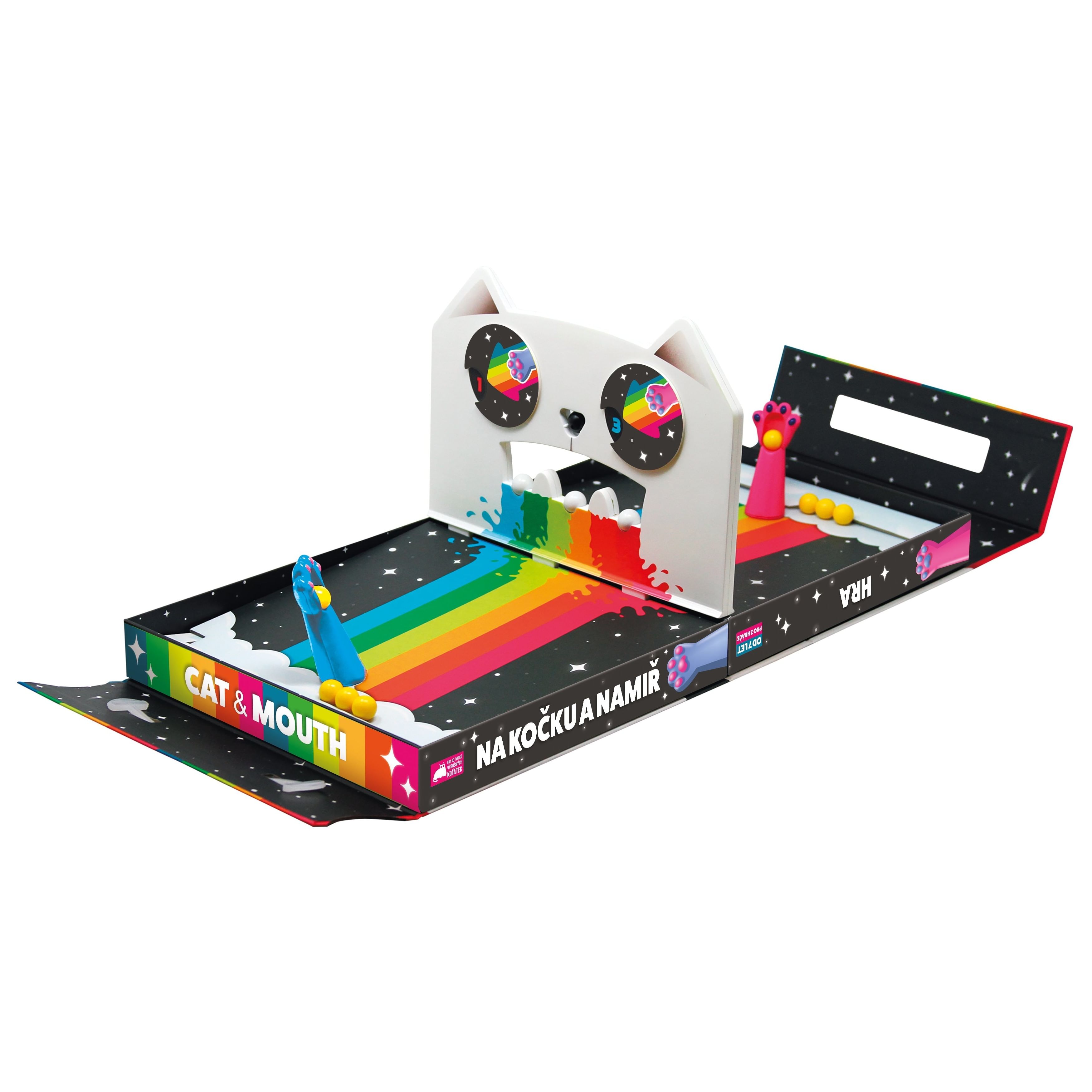 Hra Mačky a body je mierne návyková magnetická hra od autorov Bujných mačiatok. Cieľom tejto divokej hry je umiestniť všetky guľôčky jednej farby tak, aby boli v každom okamihu na súperovej strane hracej plochy.