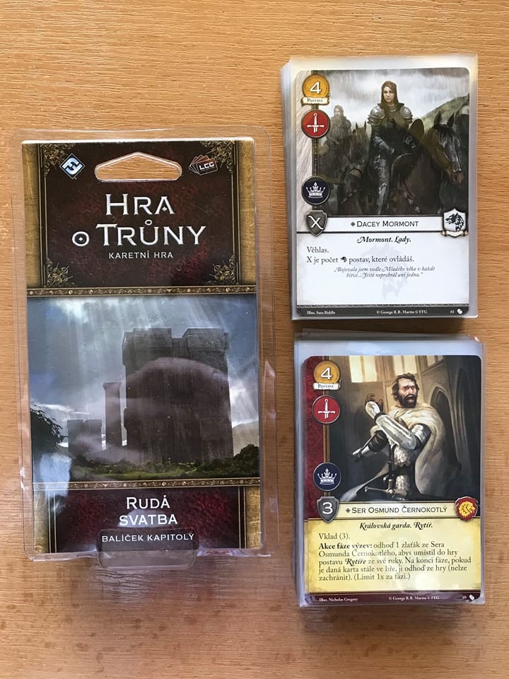 Hra o tróny - Kartová hra vychádza z bestsellerovej ságy Georgea R. R. Martina Pieseň ľadu a ohňa. Tieto karty boli navrhnuté ako rozšírenie existujúcich balíčkov a na spestrenie Hry o tróny.