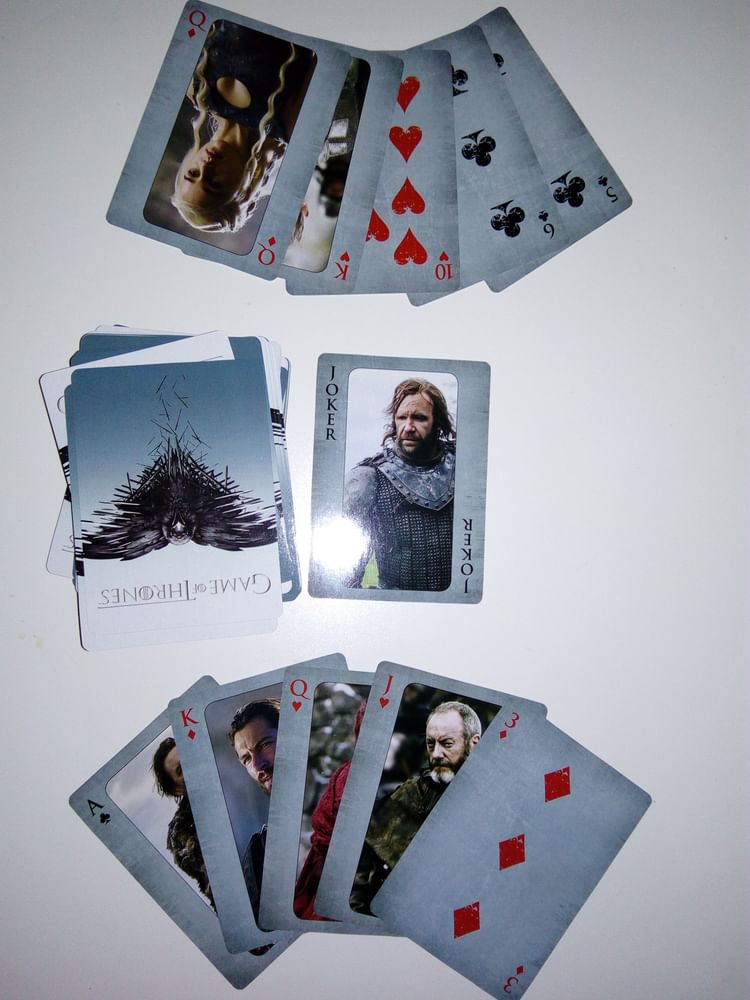 Druhý rad hracích kariet s motívmi zo seriálu Game of Thrones (Hra o tróny).