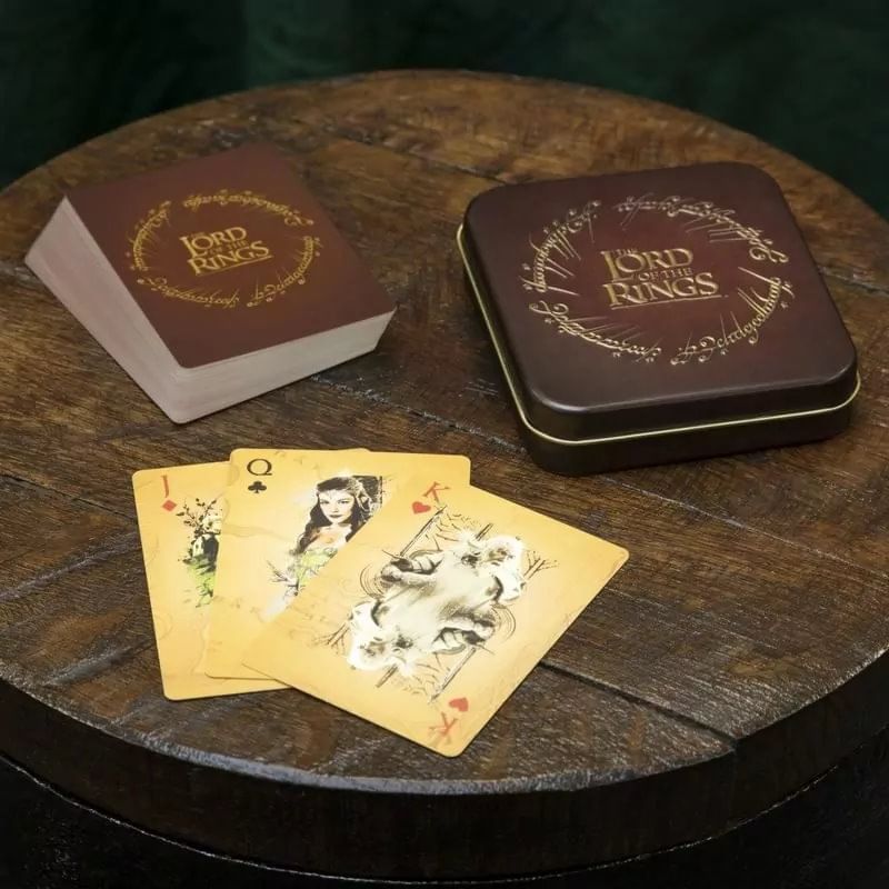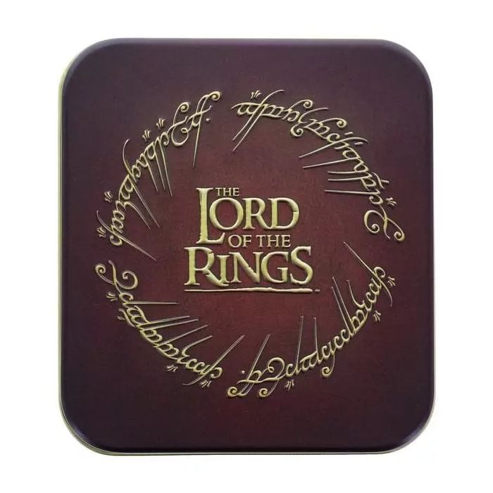 Karty sa dodávajú v krásnej plechovej krabičke s logom trilógie a nápisom z prsteňa.