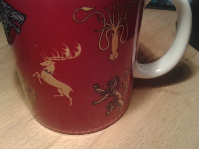 Hrnček s potlačou - erby rodov z filmového spracovania série Hra o tróny - Game of Thrones. Objem hrnčeka je 320 ml.