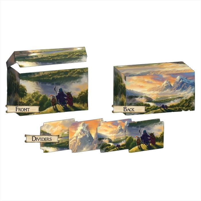 Krabička na karty pre hru na hrdinov Humblewood pojme viac ako 100 tarotových kariet v obaloch.