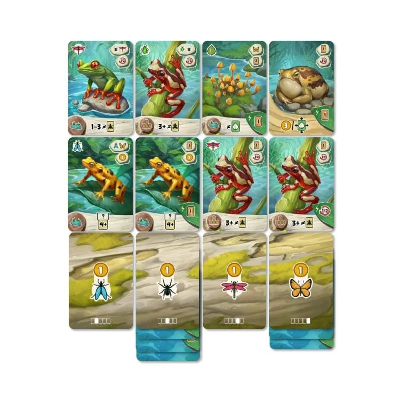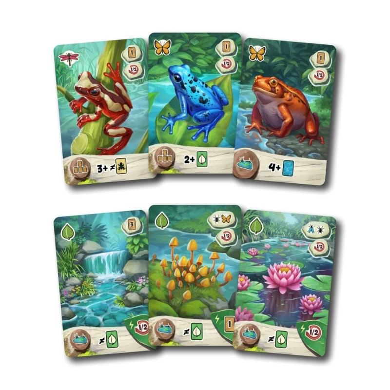 V Jazere nájdete prvok hernej interakcie - o tú sa stará skákajúca žaba v strede hracej plochy, s ktorou sa pohybujú všetci hráči a ovplyvňuje tak ich možnosti. Žaby treba aj kŕmiť, takže počas hry dostanete aj potravu v podobe hmyzu!
