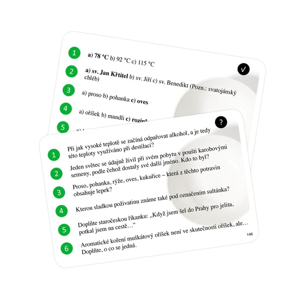 Vedeli ste, že v prestížnej svetovej encyklopédii syra je len jediný český syr, a tým sú Olomoucké tvarůžky? Viete, koľko dní trvá v našich pivovaroch hlavné kvasenie ležiaka vo vertikálnych tankoch? Vedeli by ste, že Jamón Ibérico de Bellota je najdrahší a najkvalitnejší šunka na celom svete?