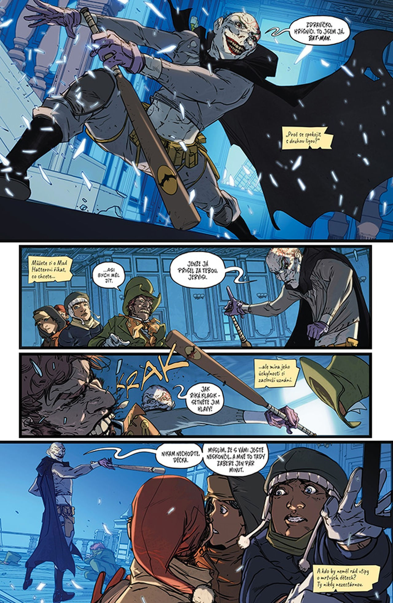 Maniakálna jokerovská apokalypsa pokračuje. A je dvojnásobne šialená – pretože tentoraz sú Jokerovia dvaja. Zatiaľ čo jeden podstupuje náročnú rekonvalescenciu v zapáchajúcej gothamskej kanalizácii, druhý v Los Angeles čelí najdrsnejšiemu súperovi, akého mu toto mesto mohlo postaviť do cesty: dopravnej zápche. A to, že klaunský princ zločinu vyvolal niekoľkými rozvernými explóziami v celej megalopole totálnu paniku, situáciu v uliciach rozhodne neupokojilo. Skôr naopak. Pokračovanie príbehu, ktorý sa zrodil v mysliach Matthewa Rosenberga (TASK FORCE Z, What’s the Furthest Place from Here?) a Carmineho Di Giandomenica (BATMAN: THE KNIGHT), obsahuje zošity série Joker: Muž, ktorý sa prestal smiať č. 5–8.