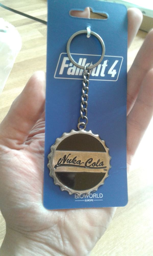 Kovový prívesok na kľúče s motívom z hry Fallout 4 - viečkom od nuca Coly.