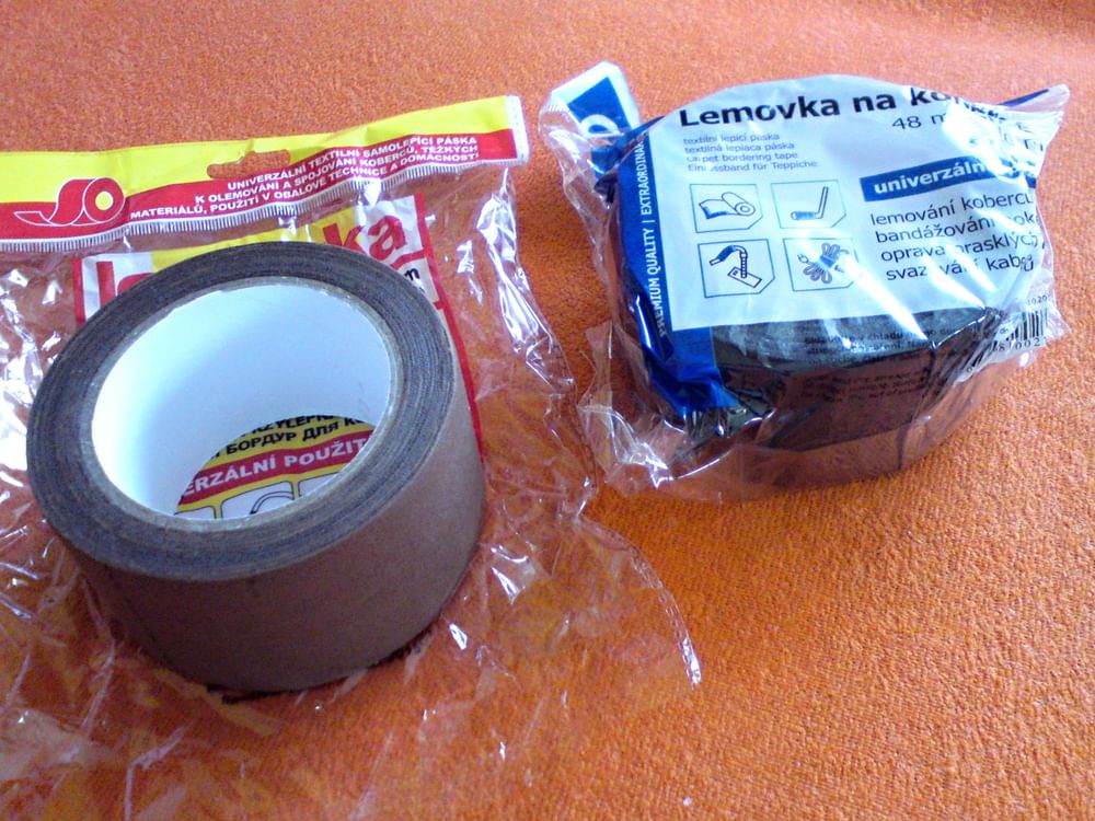 Klasická textilná kobercová páska (tzv. Kobercovka), dĺžka 10m, šírka 4,8 cm, k mání v rôznych farbách. Veľmi užitočná pri výrobe alebo opravách zbraní pre dřevárny a larp, hodí sa tiež na výrobu larpových šípov.