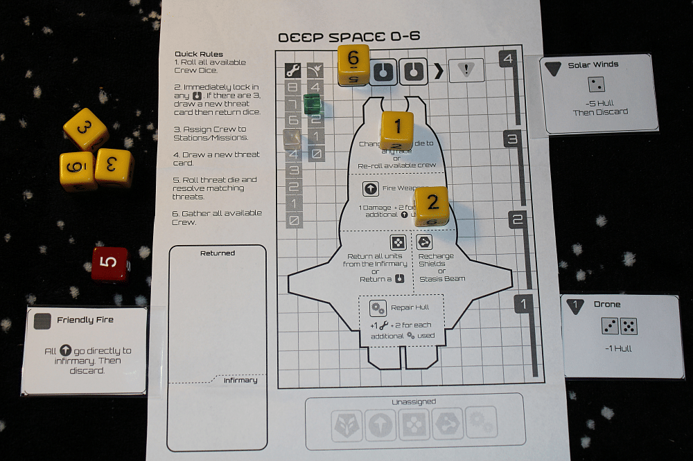 Jednofarebné šesťuholníkové kocky s číslami 1-6. Vhodné pre všetky druhy stolových hier a hier na hranie rolí.