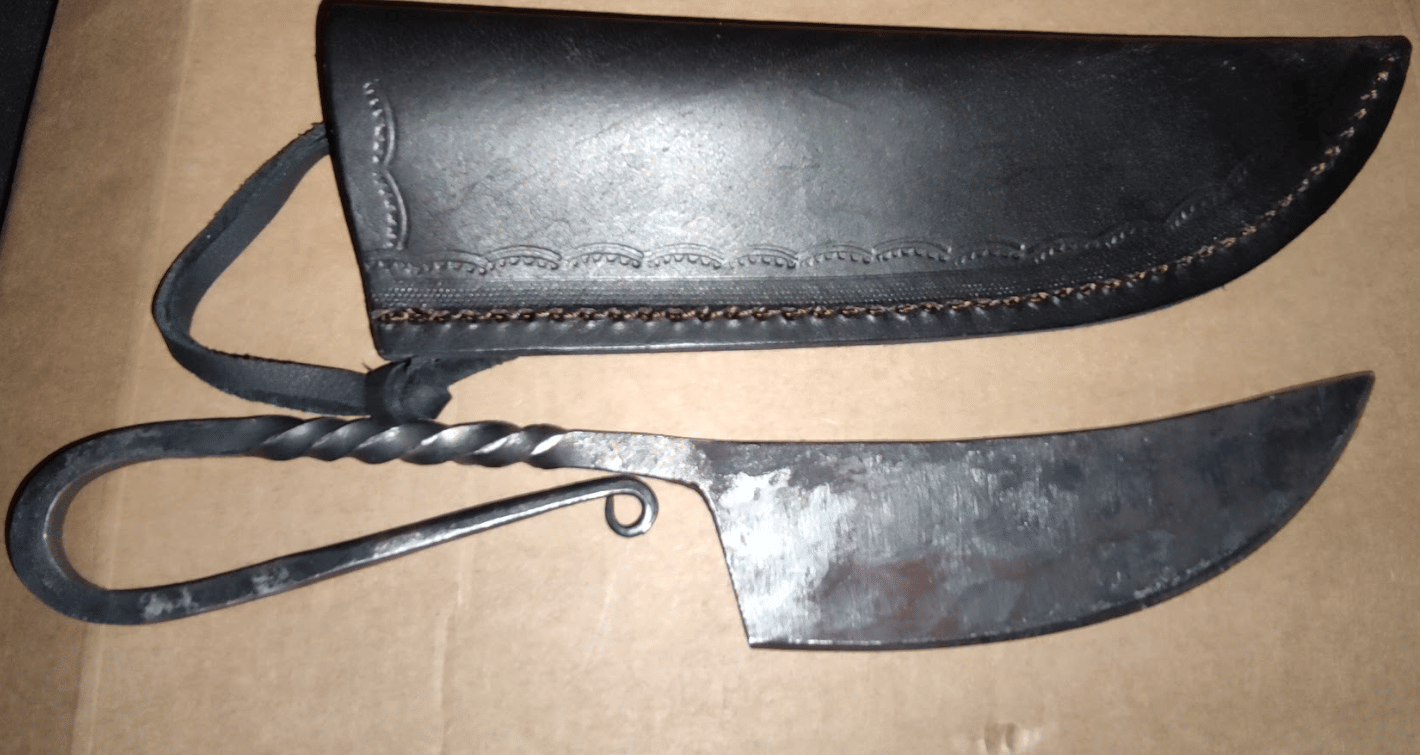 Tento nůž je velmi praktický. Na povrchu jsou vidět stopy po úderech kladiva ,což je známka, že je skutečně kovaný a mně se to velmi líbí Je dodáván s koženým pouzdrem které nemá klasické oko na opasek, ale masivnější kožený řemínek který se dá zašněrovat např. k oku pro opasek, na kterém tento nůž pravidelně nosím. Svojí velikostí ideálně padne do ruky a věřím že bude dlouho sloužit.