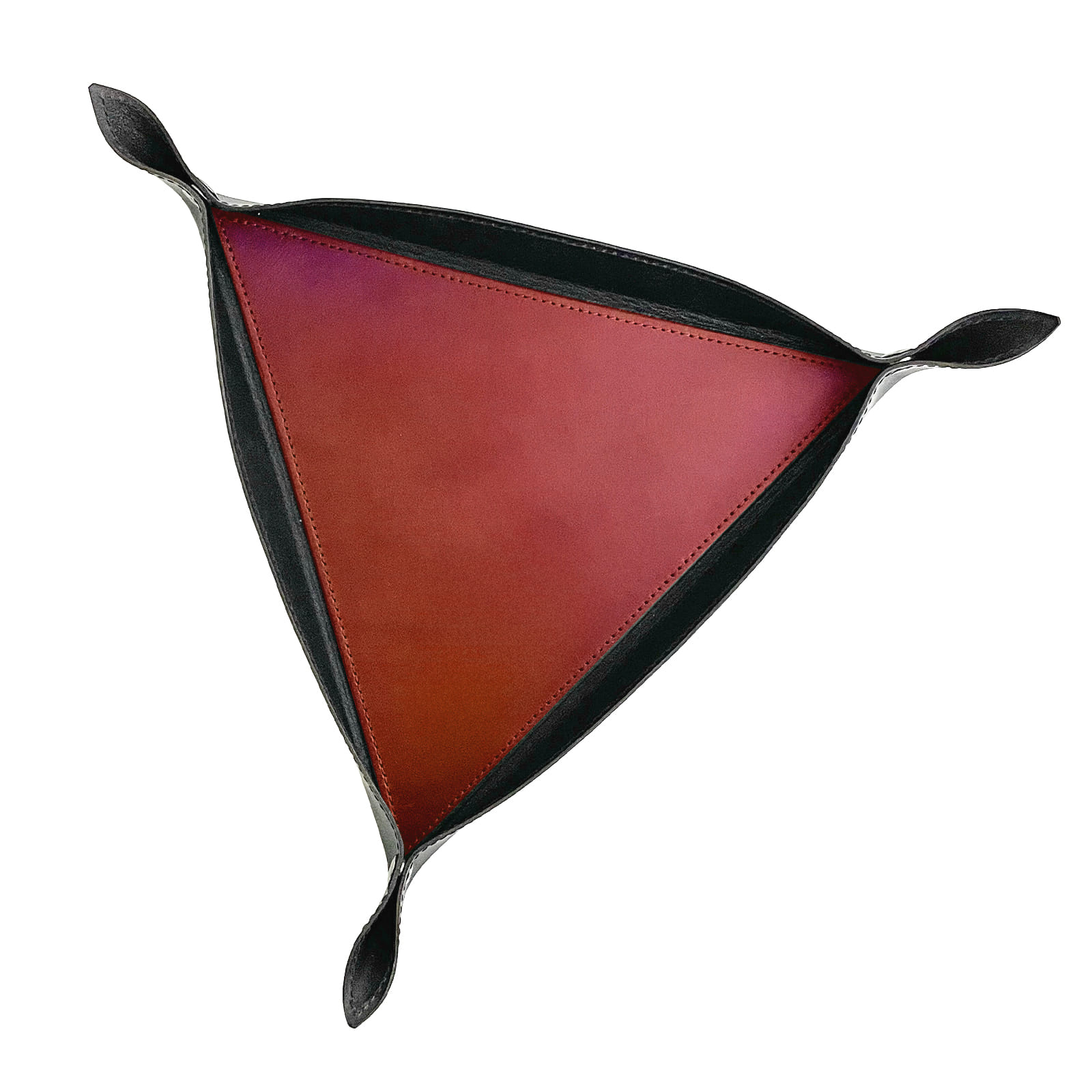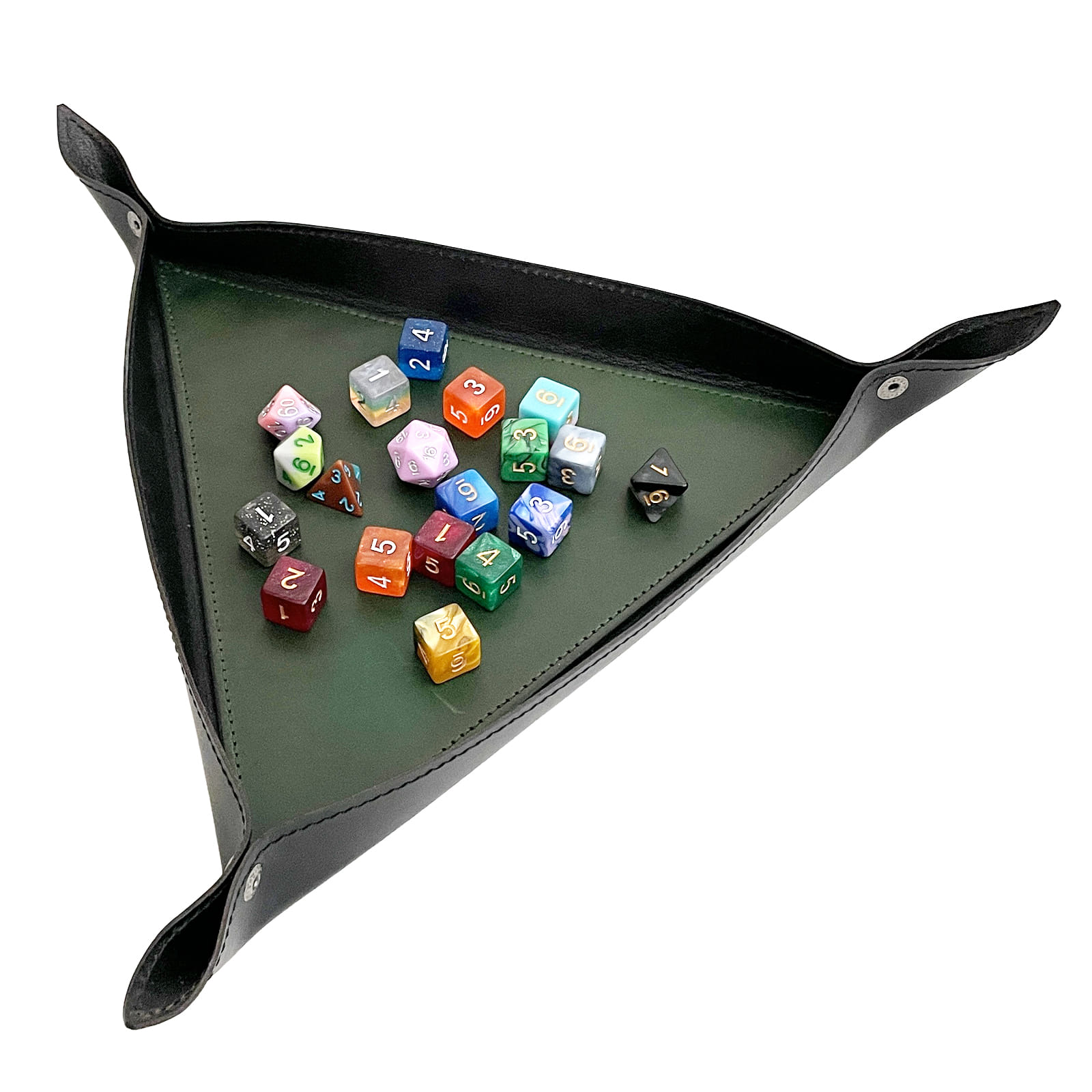 Trojuholníkový Dice Tray z pravej kože je ideálnou voľbou pre každého milovníka RPG a stolných hier, ktorý hľadá štýlové a funkčné riešenie pre hádzanie kociek. Vďaka veľkosti a pevného materiálu zaistí, že sa ti kocky nestratia a nezničia. Navyše je vizuálne originálna!