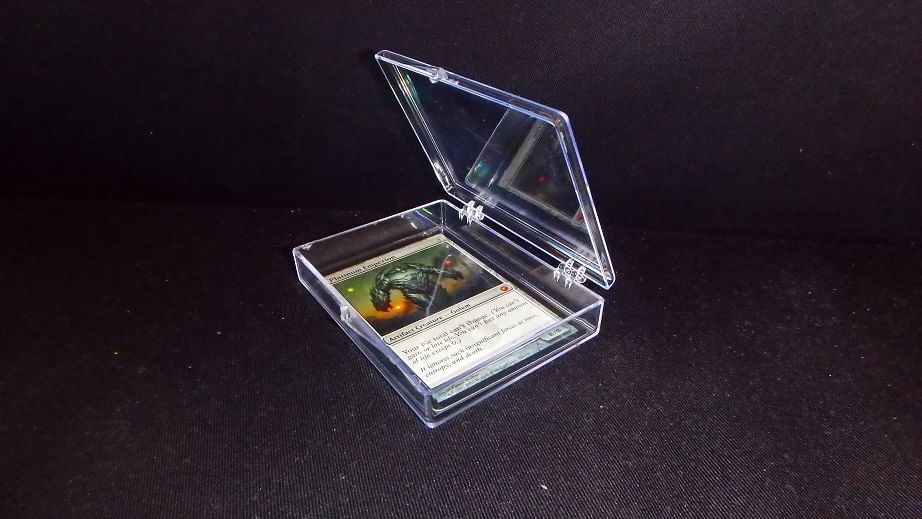 Priehľadná plastová škatuľka s vyklápacím uzáverom od spoločnosti Ultra Pre pojme a ochráni až 15 herných kariet štandardnej veľkosti.