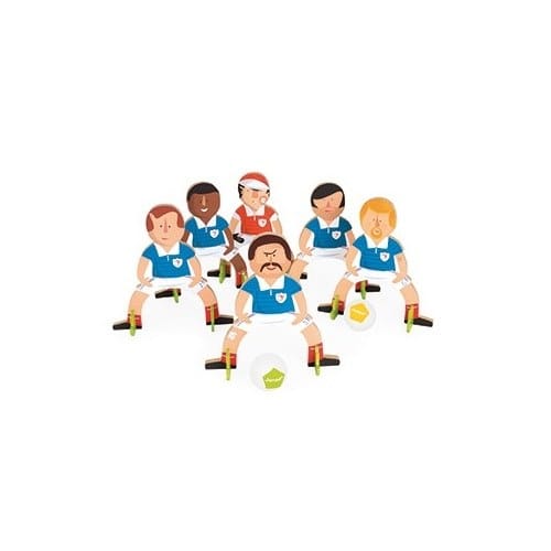 Balenie obsahuje 6 ks drevených kolkov v podobe futbalistov, 2 šúľky a 2 gule. Táto hra podporuje súťaživosť a vylepšuje koordináciu detských pohybov.