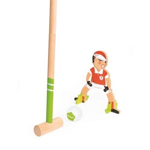 Krásne sfarbený drevený kriket s Moti futbalu je skvelým darčekom, ktorý poteší všetky vekové kategórie.