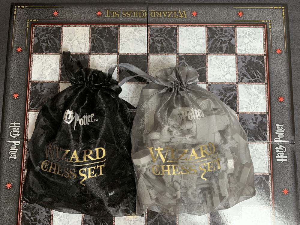 Tyto šachy jsem chtěla hned po té, co jsem viděla Rona, jak sedí na koni při osudné šachové partii v Kameni Mudrců. Šachové figurky jsou z tvrdšího plastu, šachovnice je z kartonu. Byla jsem velmi překvapená vzhledem a velikostí jednotlivých figurek. Jejich zpracování je opravdu luxusní a skvěle se s nimi hraje. Mohu vřele doporučit milovníkům šachů a Harryho Pottera. ❤️