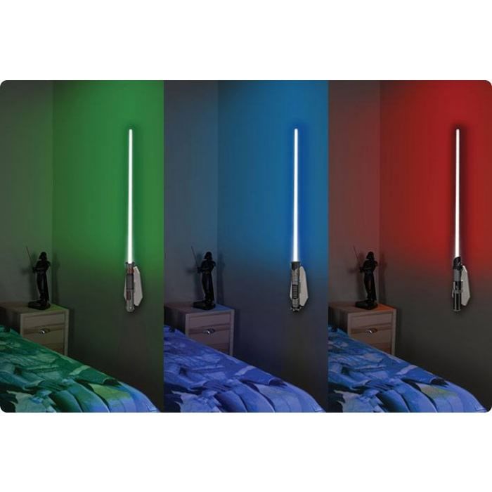 Osvetlite si izbu pomocou nástenné lampy v podobe svetelného meča zo slávnej filmovej sci-fi ságy Star Wars - Hviezdne vojny ! Vybrať si môžete hneď z troch rôznych farebných prevedení tejto legendárnej zbrane: modrý (Obi-Wan Kenobi), zelený (Luke Skywalker) a červený (Darth Vader).