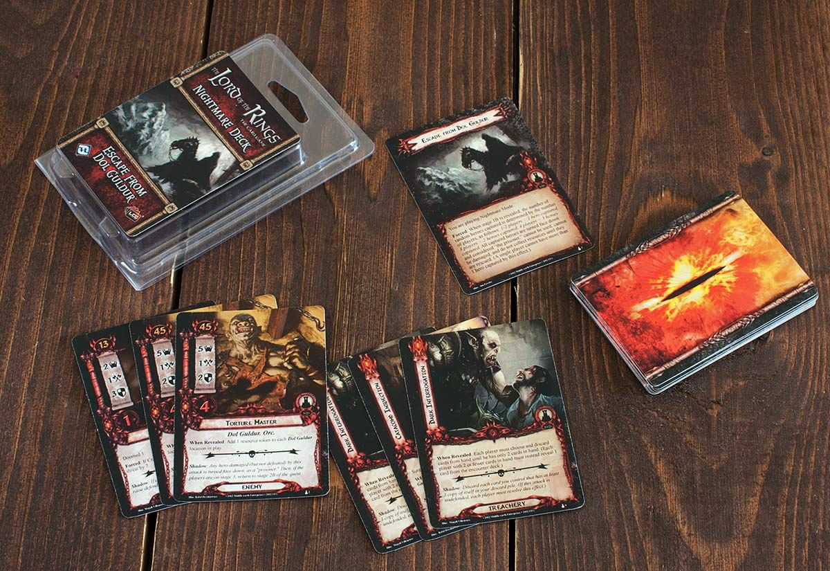 The Lord of the Rings LCG: Escape from Dol Gudur - Nightmare Deck je špeciálny balíček 20 kariet, ktorý vám umožní prejsť si stará známa miesta z Lord of the Rings LCG, avšak úplne iným spôsobom - v oveľa drsnejšie variante. Tento balík obsahuje náročnejšie stretnutie, temnejší lokácie, desivejšie nepriateľov a mnohé hrôzostrašná prekvapenia. Podarí sa vám uniknúť z Dol Guduru? Zdá sa to byť skoro nemožné ...