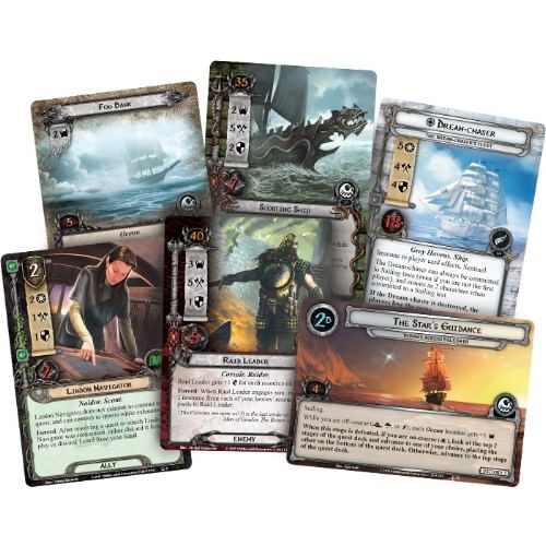 Two new heroes, as well as a hosť of new allies, events, and attachments for each sphere of influence lend further support to the expansion 's nautical themes. They also continue to develop the different themes first associated with the Noldorov trait in the Angmar Awakened cycle, adding more cards that grow in strength as other cards are added to your discard píle.