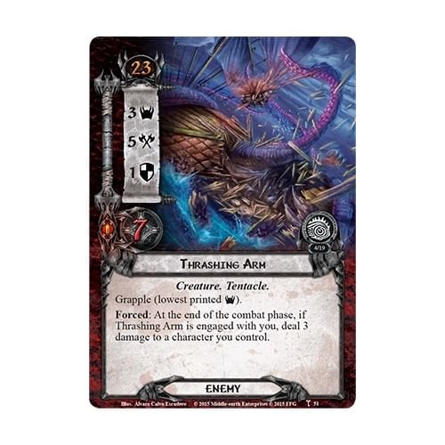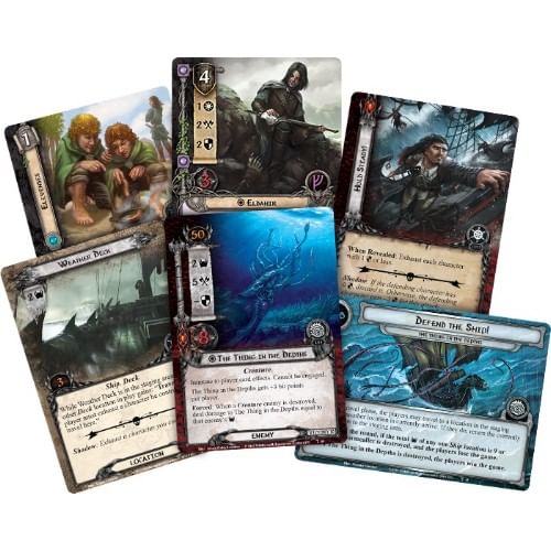 Having finally caught the Stormcaller after a harrowing pursuit across troubled seas, several of Middle-earth 's heroes prepare to board the Corsair ship in The Thing in the Depths, the second Adventure Pack in the Dream-chaser cycle for The Lord of the Rings: The Card Game. Their efforts to reclaim the Numenorean artifact the Corsairs had stolen erupt into Fierce battles that quickly spiral into nightmare when the waters beneath the Stormcaller begin to churn and massive, tentacled arms erupt from the sea to grapple the ship and the Sailors aboard it!