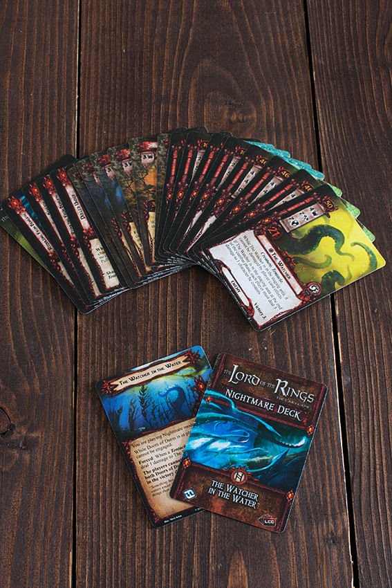 Lord of the Rings LCG: The Watcher in the Water - Nightmare Deck je špeciálny balíček 20 kariet, ktoré pridávajú nové nebezpečenstvá a prekvapenia do známych scenárov.
