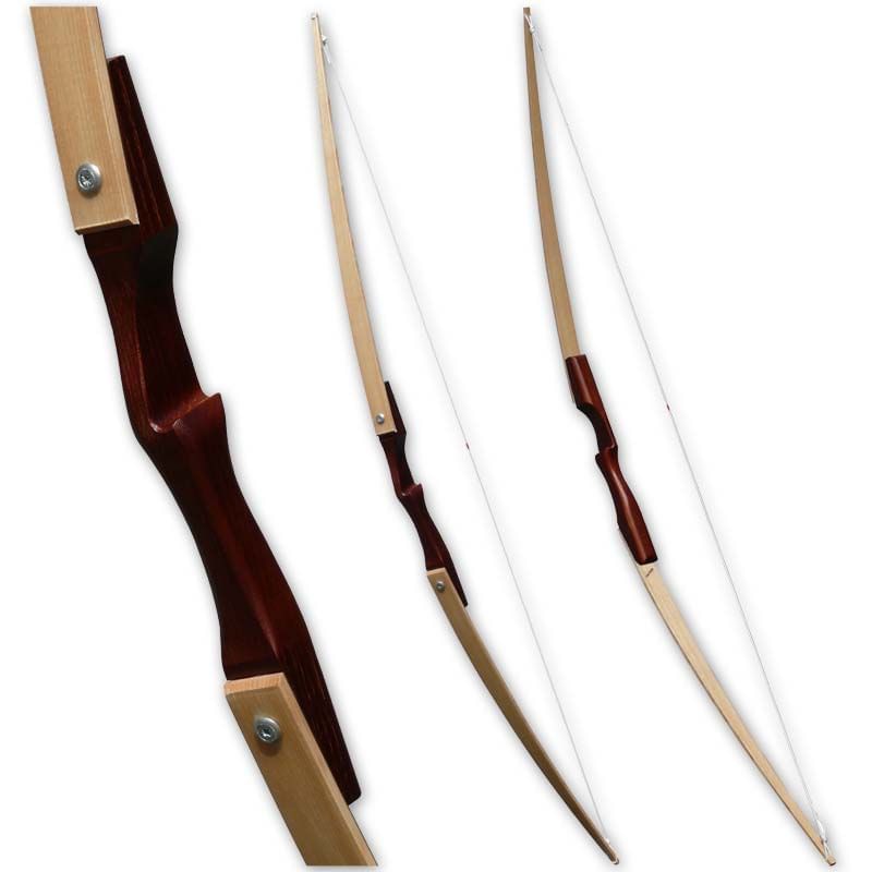 Trojdielny luk s dreveným madlom a sendvičovými ramenami zo sklolaminátu a dreva. Luk je odolnejší variantom nami ponúkaného dreveného luku , sendvičový ramená zaisťujú luku väčšiu silu náťahu ako klasická drevená.