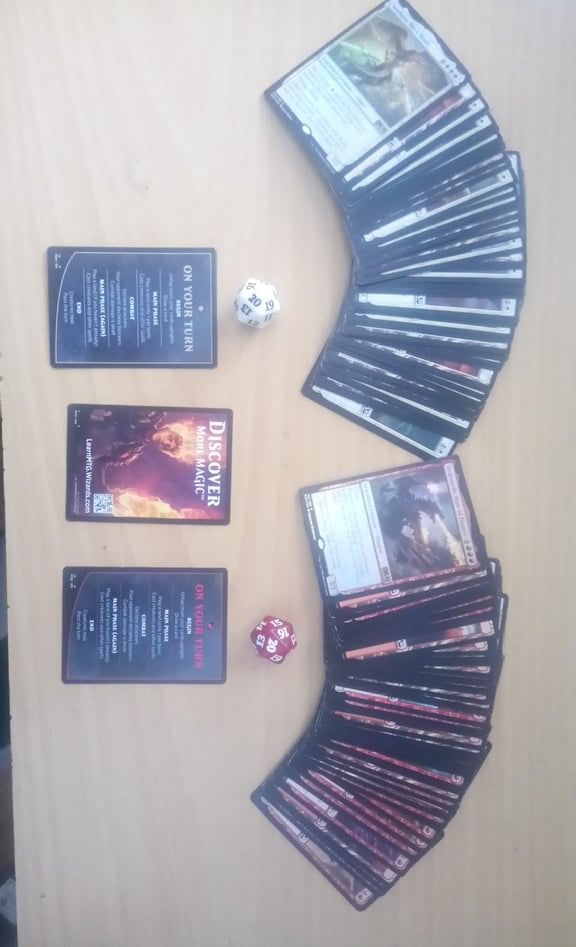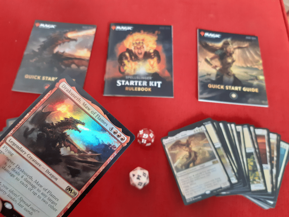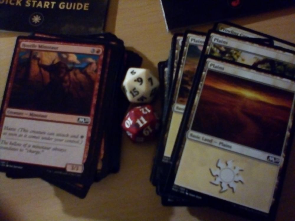 Na popud absolutního nadšení z karet Magic po pár hrách s kamarády jsem si zkrátka musel také nějaké kartičky pořídit, objevil jsem právě tento velmi výhodný starter kit, dva předpřipravené balíčky o 60 kartách, červená a bíla, k tomu i dvě d20 počítadla a to vše za velmi výhodnou cenu, s balíčkem jsem velmi spokojen, rozhodně doporučuji, Kit obsahuje návod, jak hrát, jaké informace z karet vyčíst, a dva návody, které popisují první kola hry souboje těchto dvou balíčků.