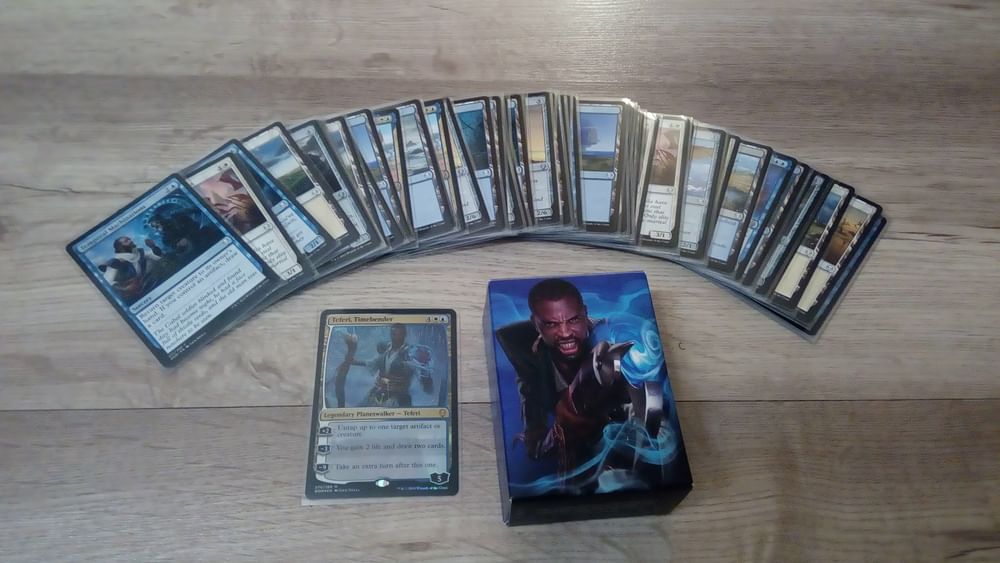 Krásný modro-bílý balíček připraven ihned k hraní, možností upgrade 2 boostery. Teferi je navíc zajímaví Planeswalker, který pracuje s artefakty. Takže kdo si ještě nesestavil svůj vlastní modro-bílý balíček a má rad hraní s artefakty je Teferi pro něj ten pravý.