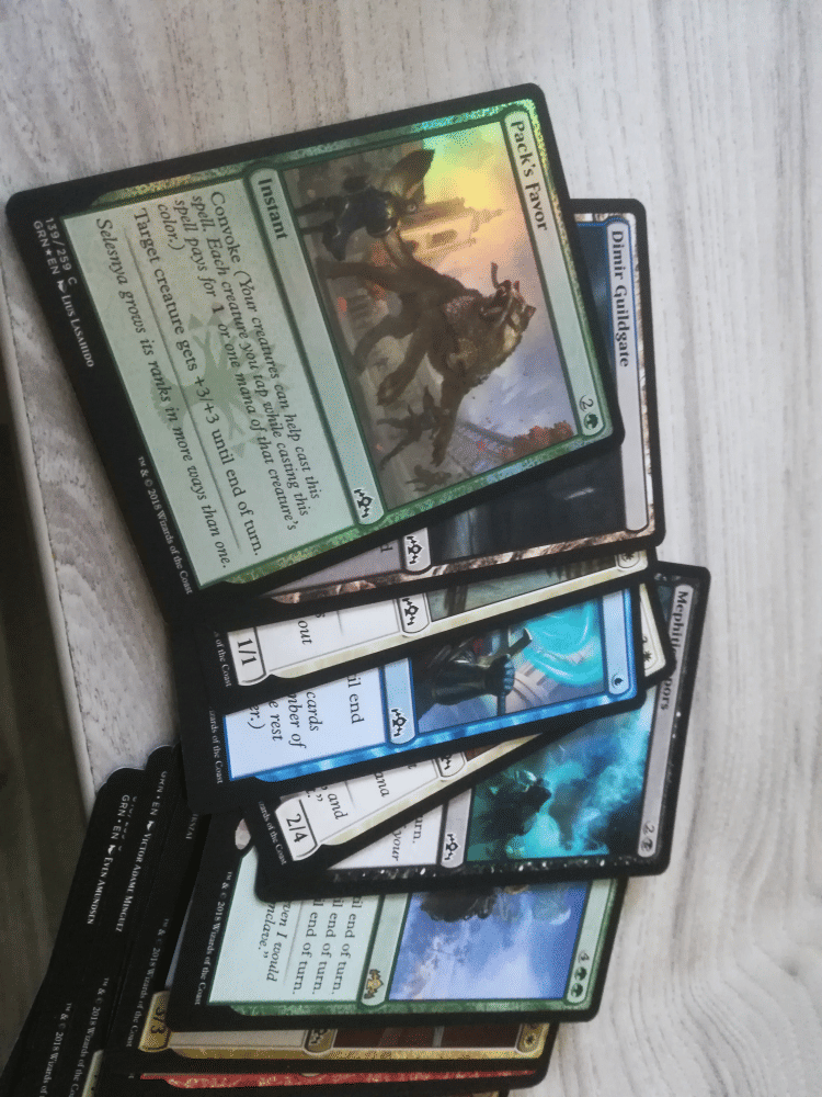 Booster z novej edície Guilds Of Ravnice populárnej kartovej hry Magic: the Gathering obsahuje 15 náhodne namiešaných kariet.