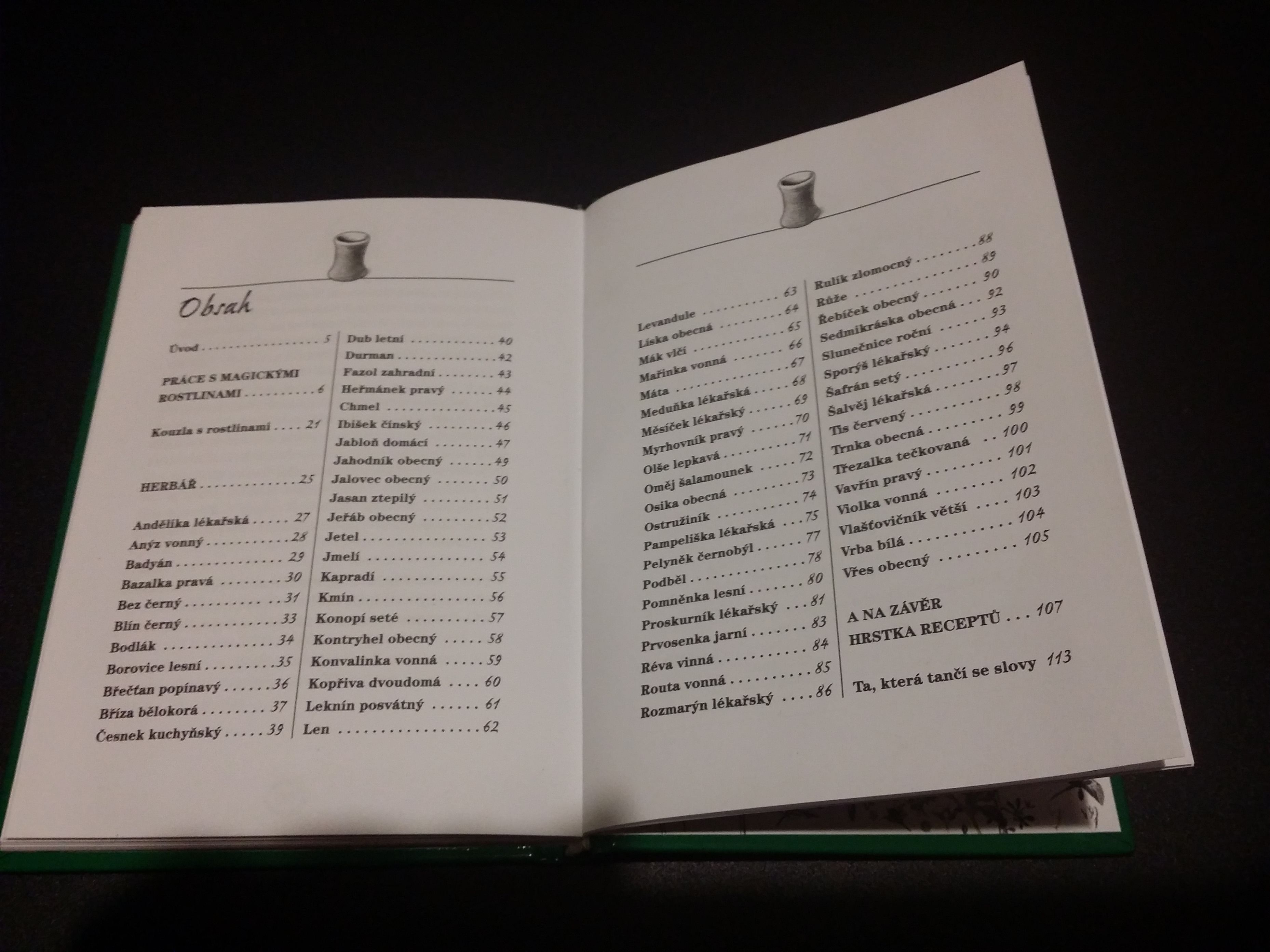Kniha nejenom o květinách. Jsou zde popsány korespondence barev. Návod na škapulíře, kuřidla a recepty na punče, nápoje, med, jablka aj. Co se týče rostlin. Ty jsou stručně popsané. U každé rostliny je napsáno, s jakým živlem souvisím a jejich polarita.