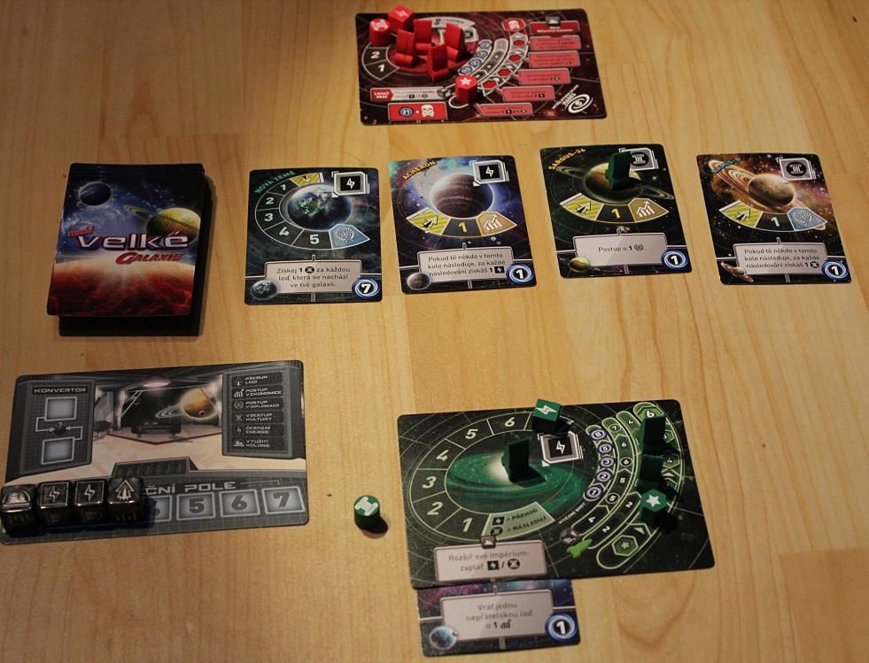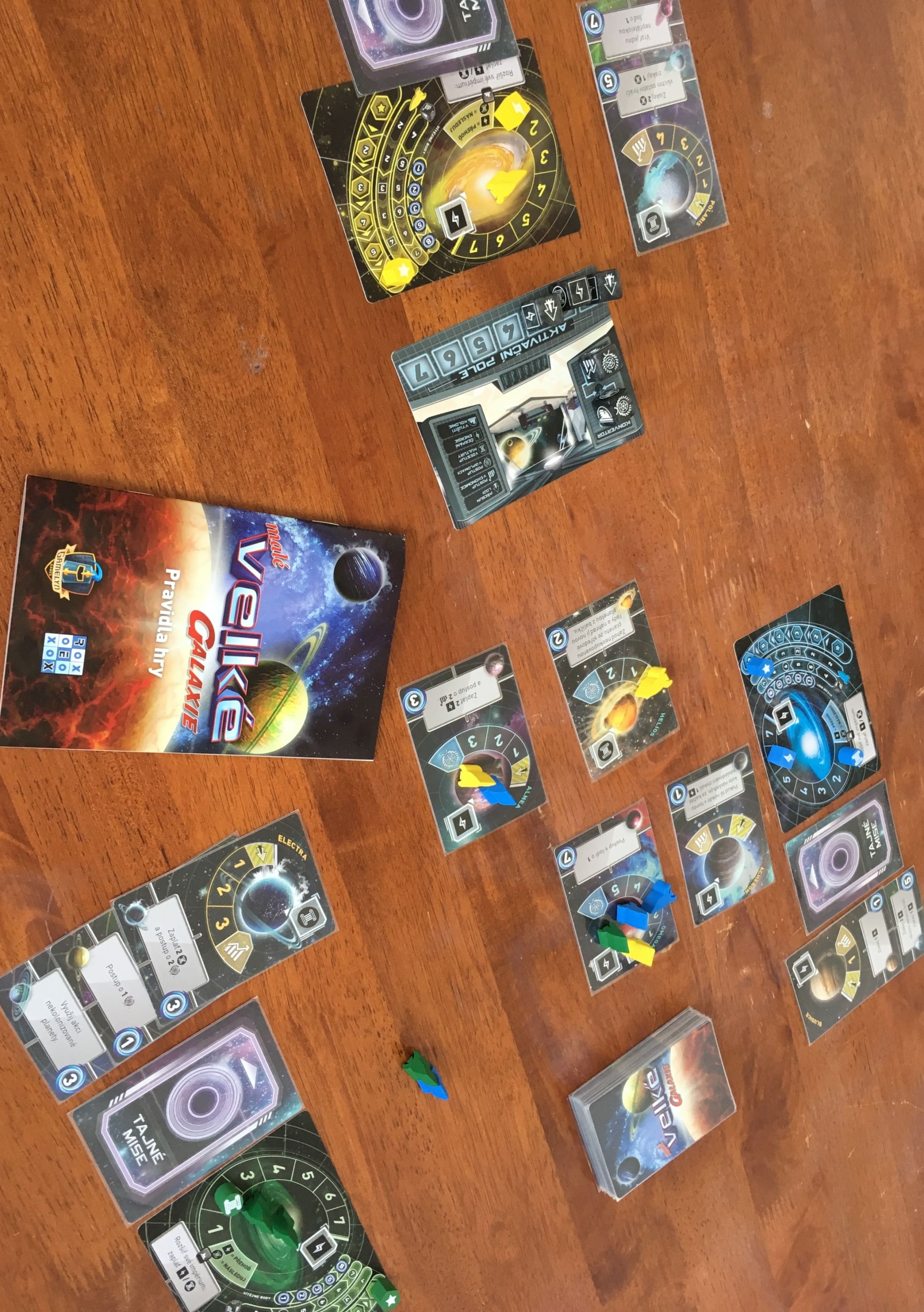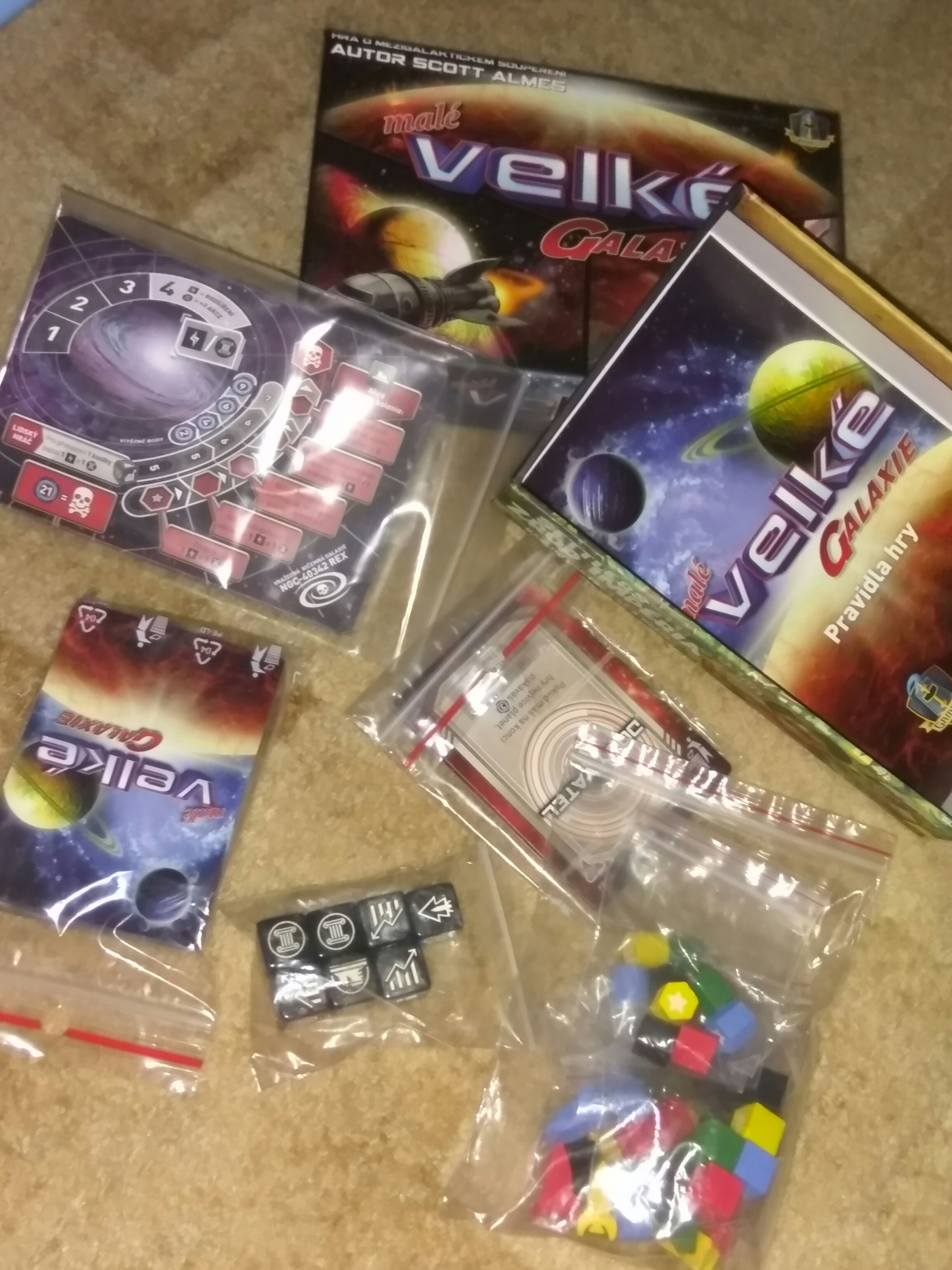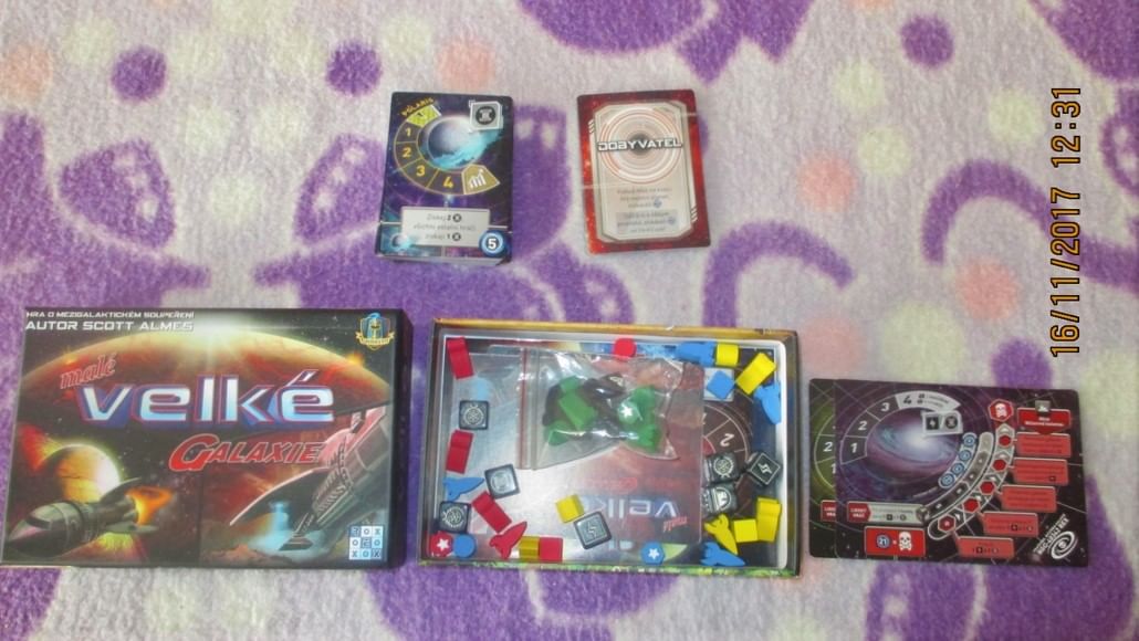 Je toto hodnotenie prínosné? ÁNOHra má hezké a kvalitní komponenty, perfektní je i víko krabičky, které slouží jako podložka pro házení kostkami. Jediné mínus jsou poměrně malé karty galaxií pro jednotlivé hráče - těch pár centimetrů by se do krabičky ještě vešlo - ale to je jen maličkost.