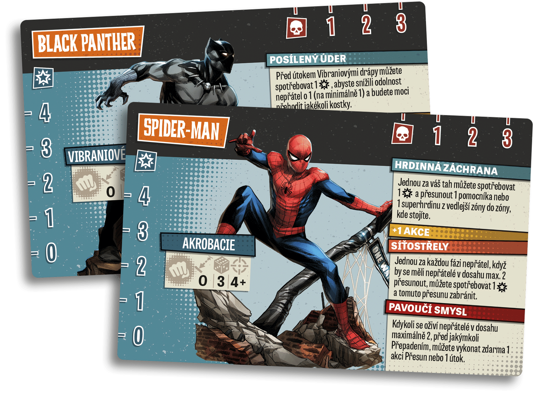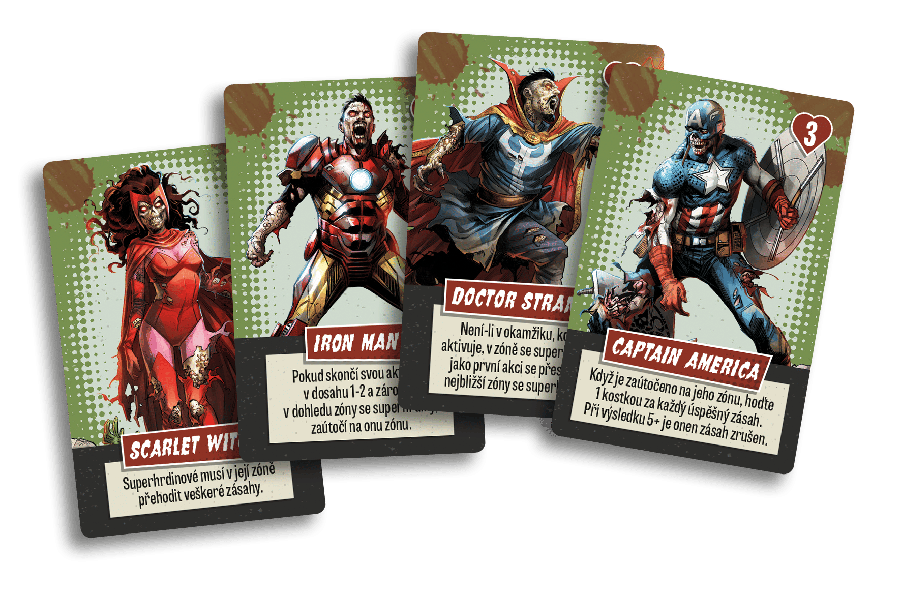 MARVEL ZOMBIES: ODBOJ SUPERHRDINOV HRA Z EDÍCIE ZOMBICIDE je kooperatívnou hrou, kde 1 až 4 hráči ovládajú posledný z preživších superhrdinov čeliacich svojim zombifikovaným bývalým kolegom a hordám zombií ovládaným samotnou hrou. Cieľom je splniť ciele misií, poraziť nepriateľov a zachraňovať ohrozených pomocníkov. Porážaním zombií budete získavať skúsenosti, ktoré potrebujete na to, aby ste sa stali ešte mocnejšími hrdinami. Ale čím ste silnejší, tým viac zombií sa zjaví a bude vás chcieť zožrať! Iba pri dôkladnej spolupráci a maximálnom nasadení svojich schopností môžu superhrdinovia dúfať, že sa im podarí ukončiť zombie apokalypsu!