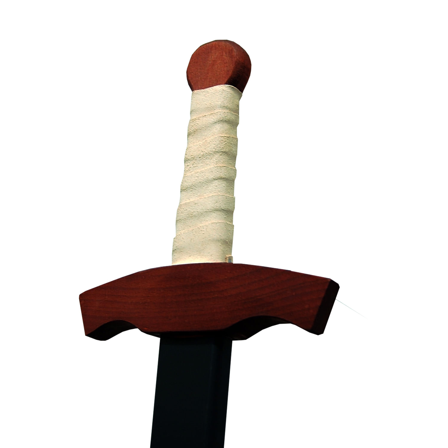 Drevená replika gotického meča určená pre larp a drevárne. Je vyrobená z kvalitného jaseňového dreva. To je na rozdiel od iných druhov driev vhodnejšie na výrobu drevených zbraní ako napr. často používaný buk, ktorý sa postupne štiepe, robí drobné triesky a nie je tak pružný. Záštita je javorová, niekoľkokrát brúsená a morená. Rukoväť meča je omotaná kožou. Čepeľ je obalená čiernym matným pvc obalom, jedná sa o veľmi výdržný materiál, ktorý znesie početné záseky.