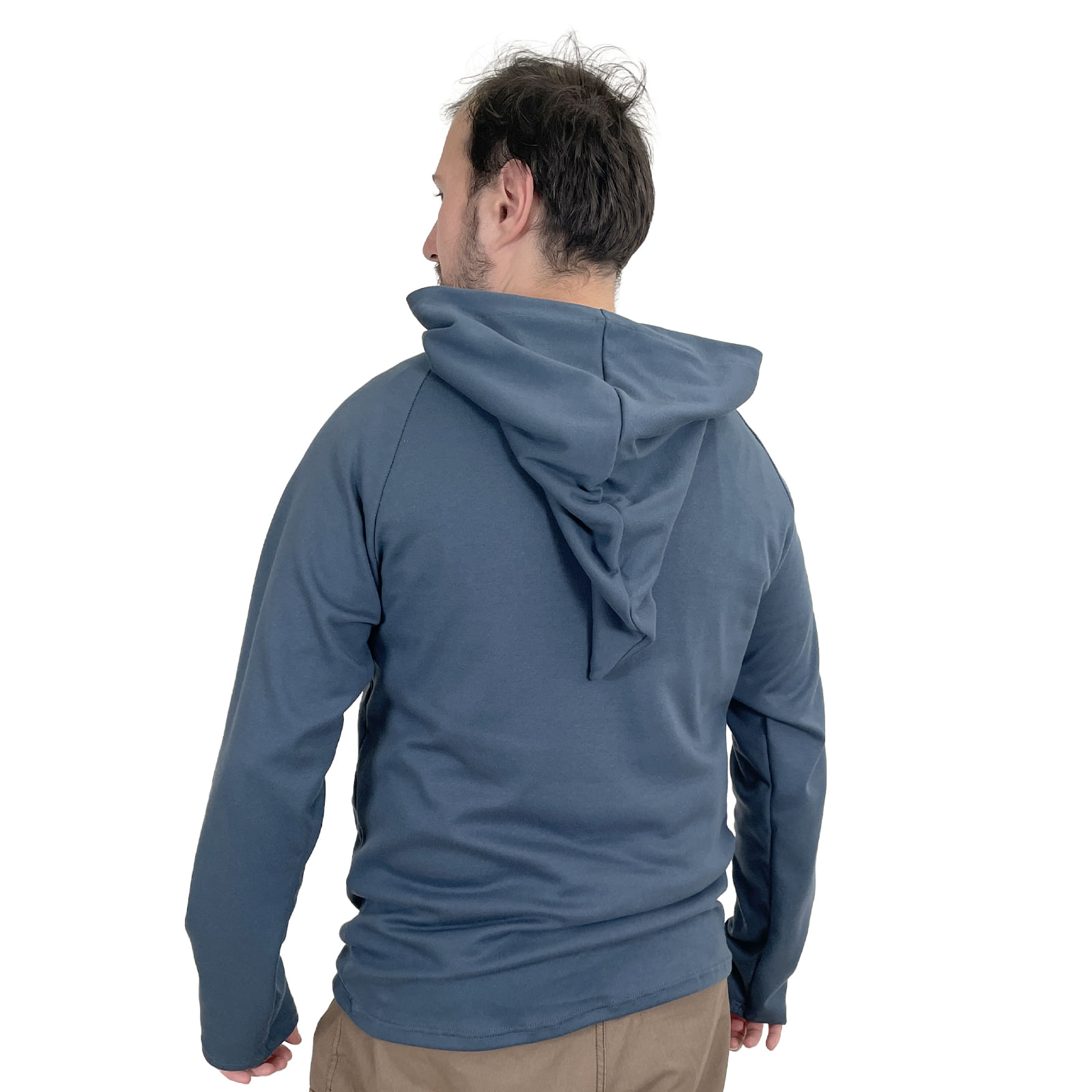 Mikina má dlhé Raglan rukávy , ktoré dosahujú až polovicu dlaní, a široký špicatý kapucňa , ktorá pokryje aj tú najviac skákaciu pokožku hlavy. Materiál je veľmi príjemný, ľahký a pohodlný.