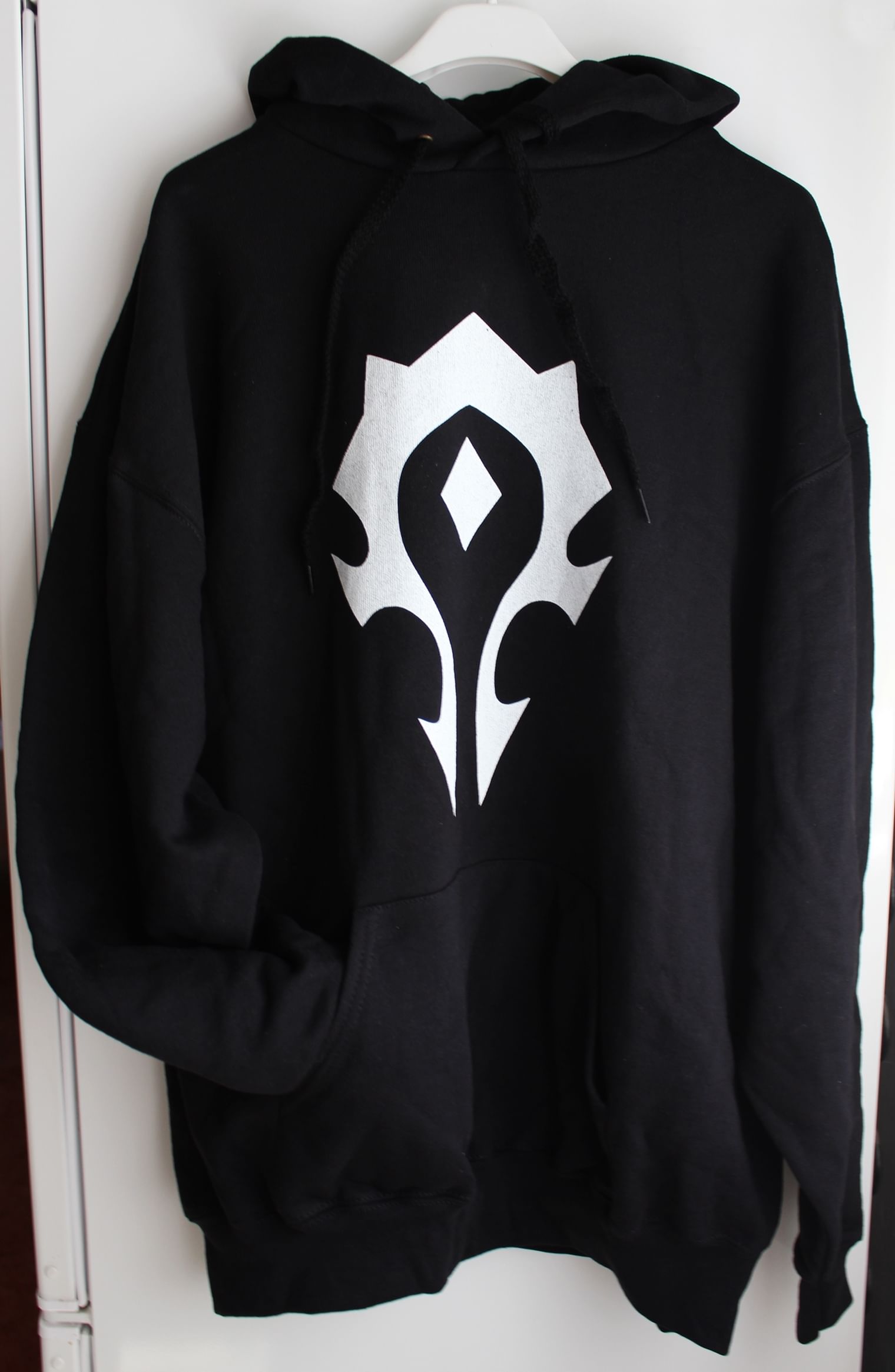Mikina s jednoduchým bielym prevedením znaku Hordy z hry World of Warcraft.