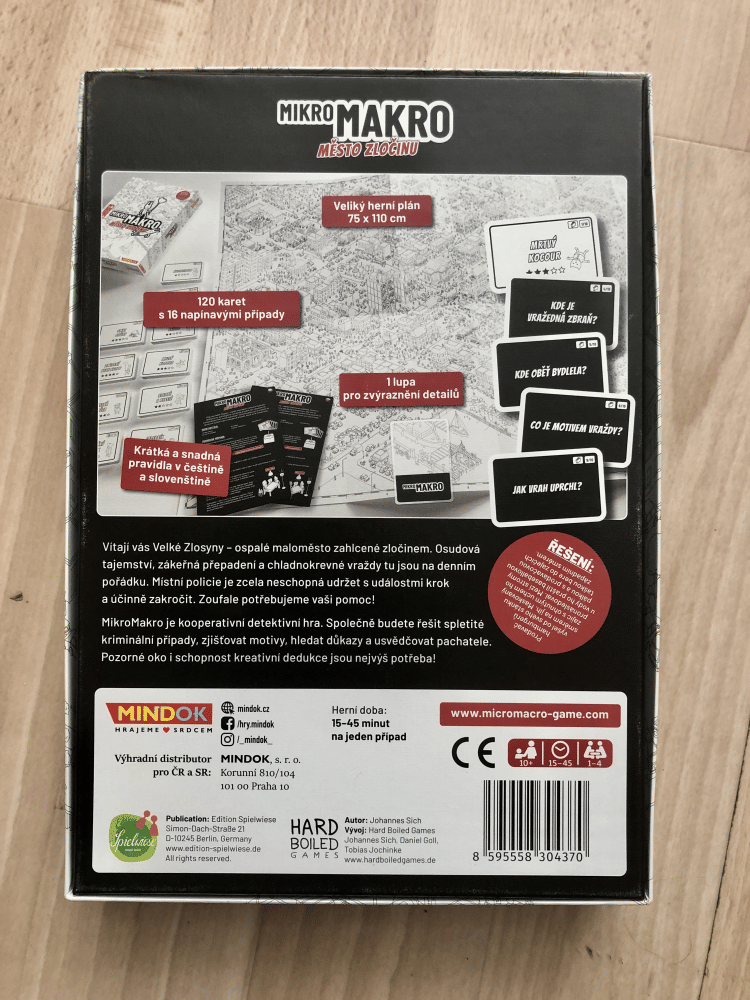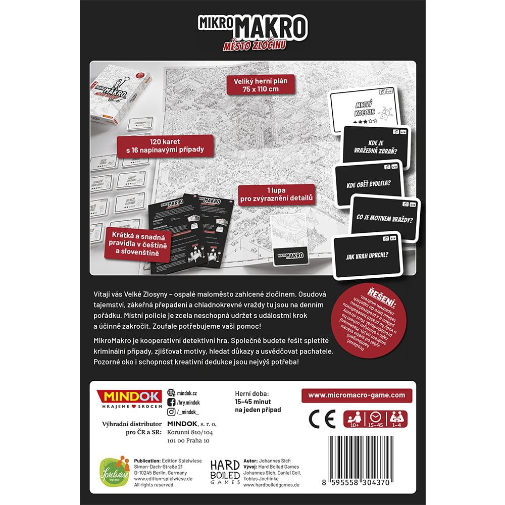 MicroMacro je kooperatívna detektívna hra. Spoločne budete riešiť spletité kriminálne prípady, zisťovať motívy, hľadať dôkazy a usvedčovať páchateľov. Bystré oko a schopnosť kreatívnej dedukcie sú najviac potrebné!
