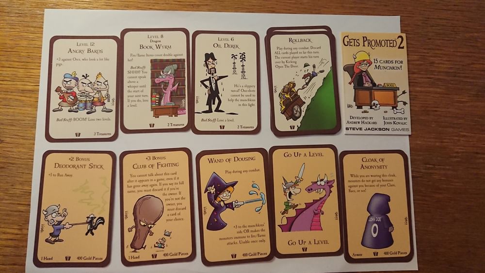 Sada Munchkin Get Promoted obsahuje 15 ťažko dostupných promo kariet pre hru Munchkin.
