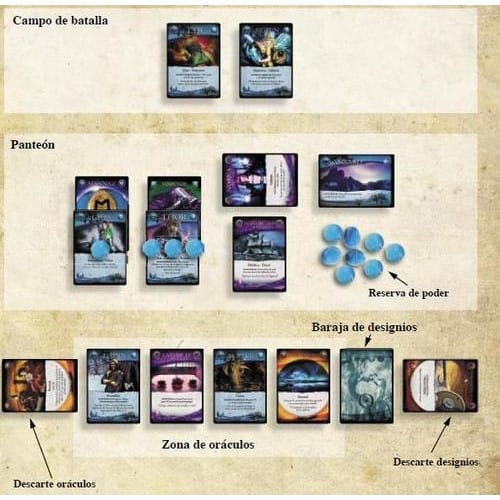 Myths at War je kartová deck-building hra, ktorá sa odohráva vo fantastickom svete mýtov. V balení nájdete 300 kariet rozdelených do severskej, egyptskej a japonskej mytológie. Každá z týchto mytológiou zahŕňa 2 panteónu (karty, ktoré definujú vašu hernú stratégiu), kartové balíček bohov (tie obsahujú postavy, udalosti a zdroje) a karty pre balík návrhov (akcie, vybavenie a zoslania).