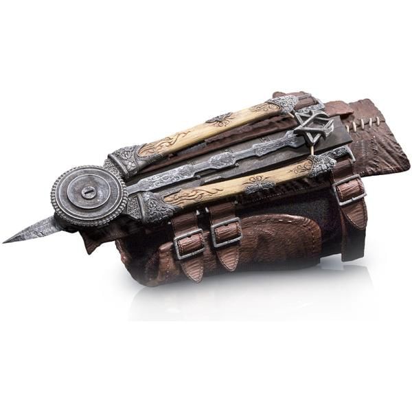 Replika zbrane je dodávaná v životnej veľkosti. Materiálom je PVC a kože, nechýba skrytá čepeľ, zaťahovacie kuše a mäkká plastová šípka. Dĺžka nátepníky je cca. 16 cm.