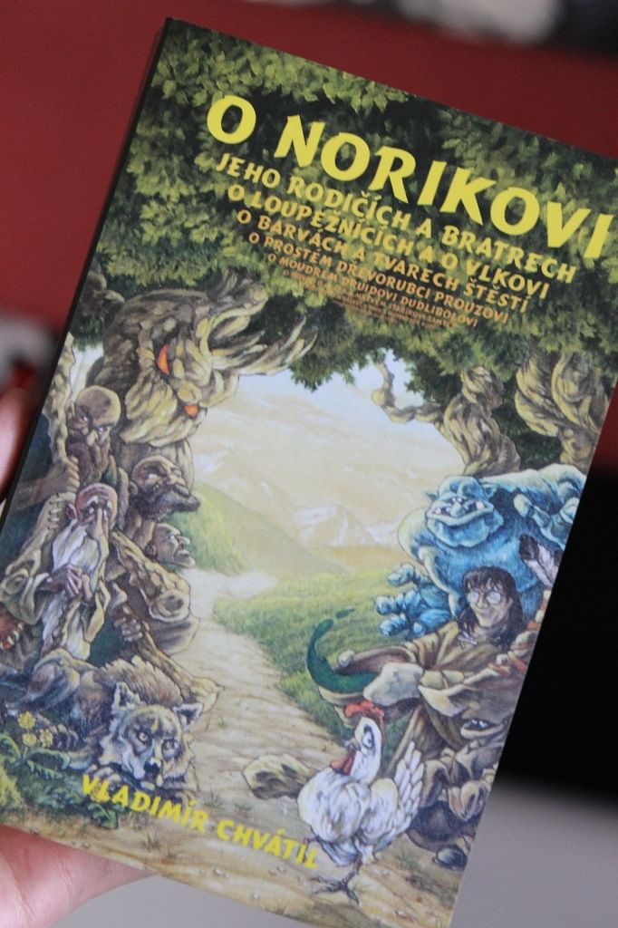 O Noriko, jeho rodičoch a bratoch, o zbojníkoch ao vlkovi, o farbách a tvaroch šťastie, o prostom drevorubači Prouza, o múdrom druid Dudlibolovi, o hovno pri ceste a mŕtvom starčekovi tamtiež ...