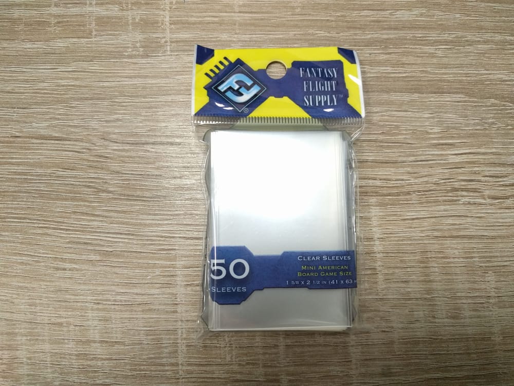 Sada päťdesiatich obalov „mini american“ – sú vhodné pre hry Arkham Horror, Twilight Imperium, World of Warcraft: The Board Game, Red November, Cave Troll a ďalšie.