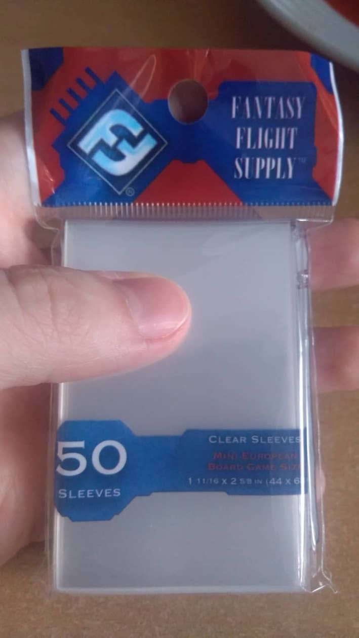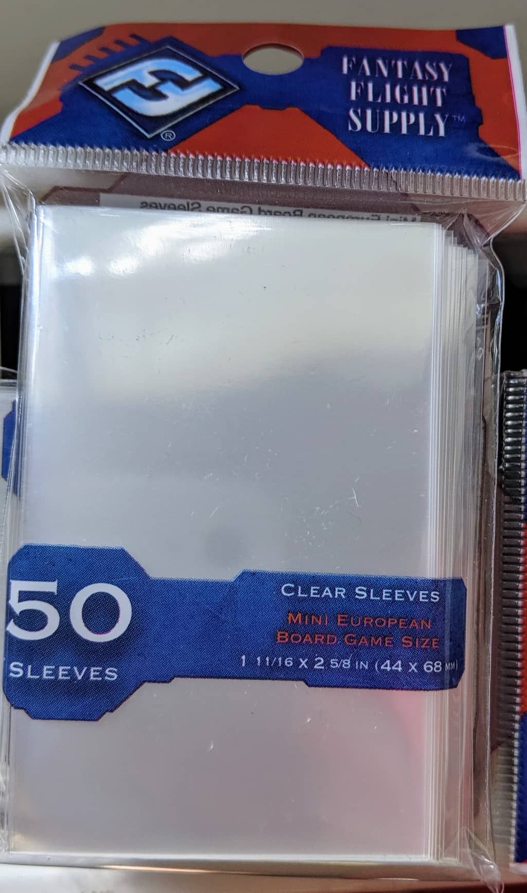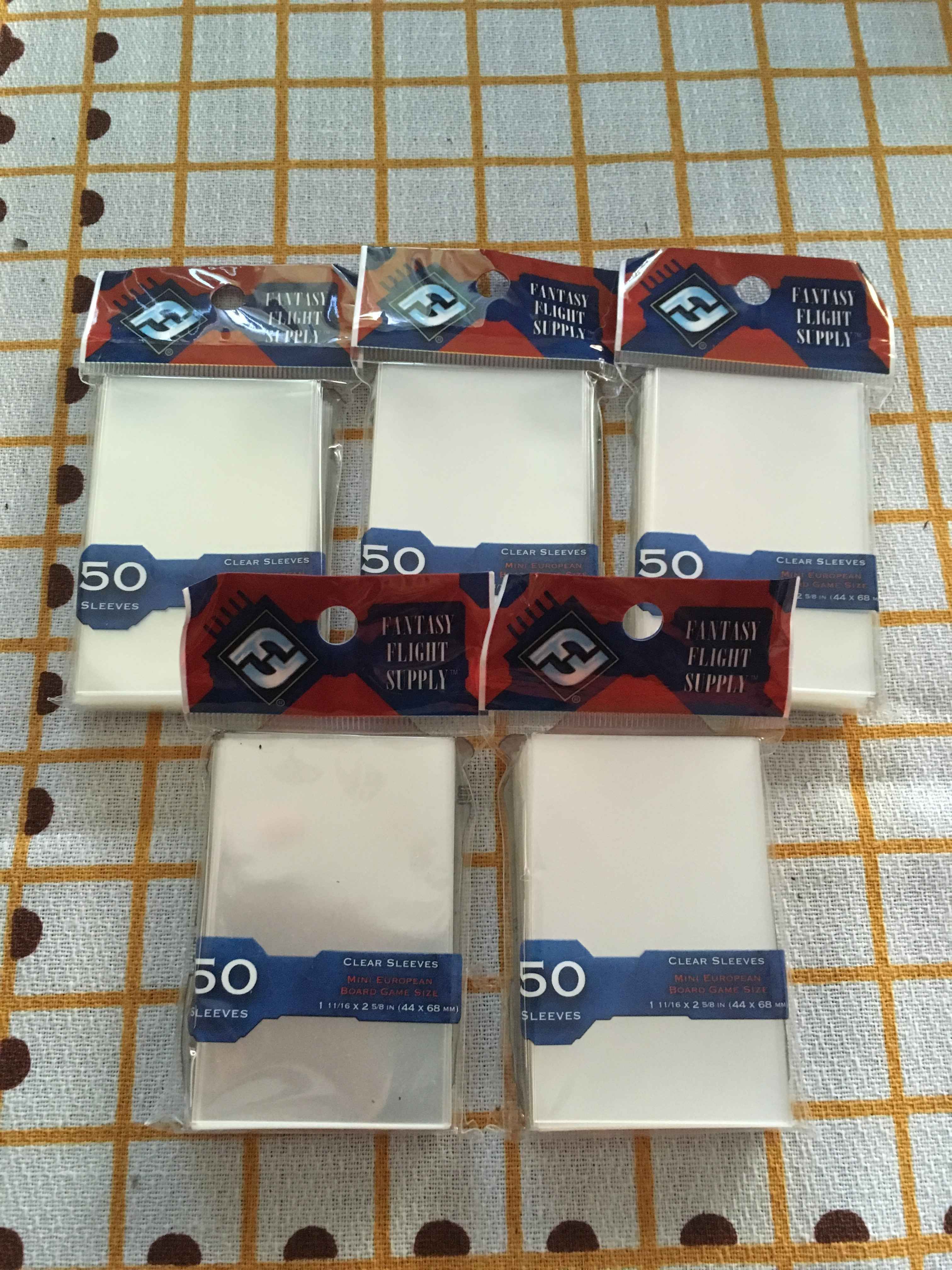 Sada päťdesiatich obalov na karty "european mini", vhodné pre hry Wings of War, Ticket to Ride, Pirate's Cove, Poštový Kuriér, El Grande a ďalšie.