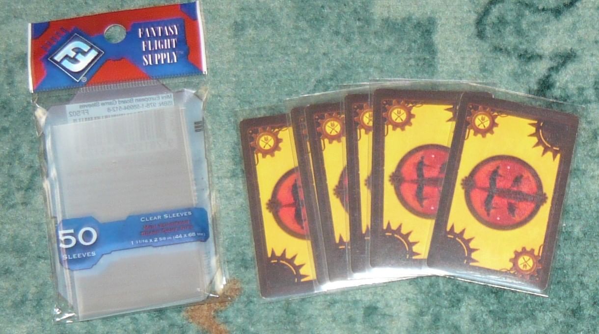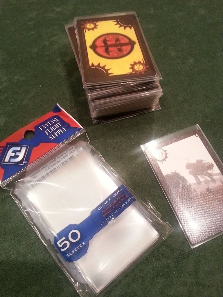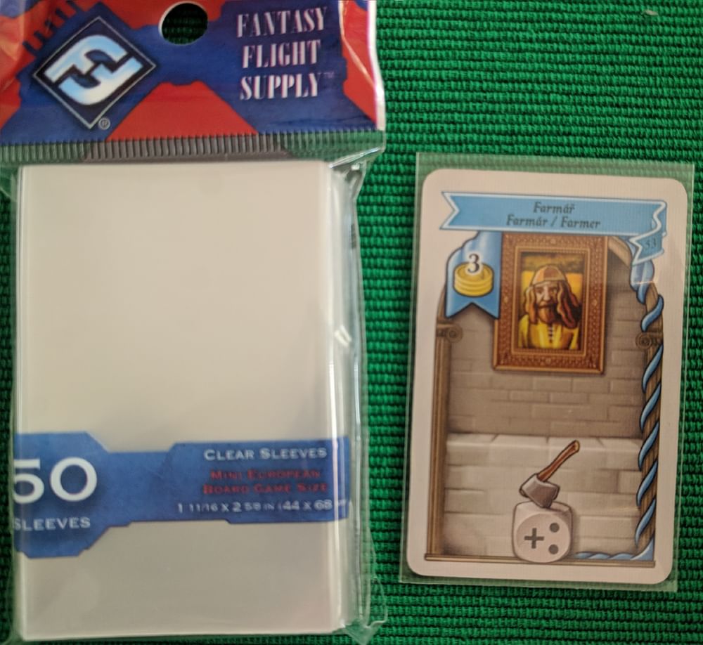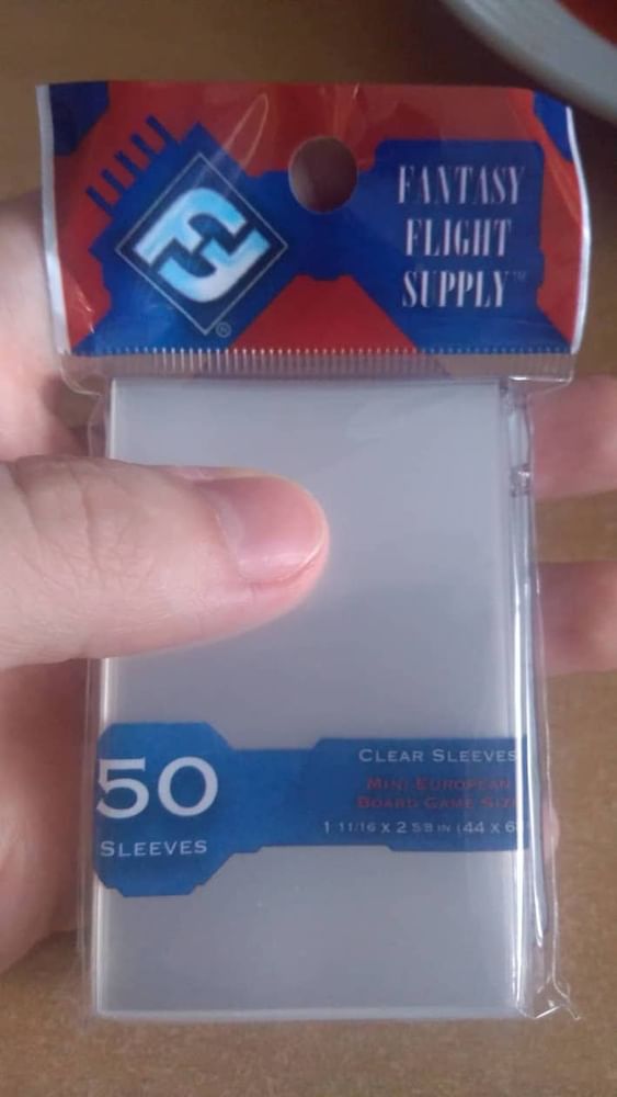 Sada päťdesiatich obalov na karty "european mini", vhodné pre hry Wings of War, Ticket to Ride, Pirate's Cove, Poštový Kuriér, El Grande a ďalšie.