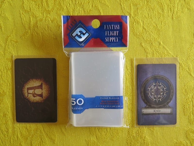 Sada päťdesiatich obalov na karty "european mini", vhodné pre hry Wings of War, Ticket to Ride, Pirate's Cove, Poštový Kuriér, El Grande a ďalšie.