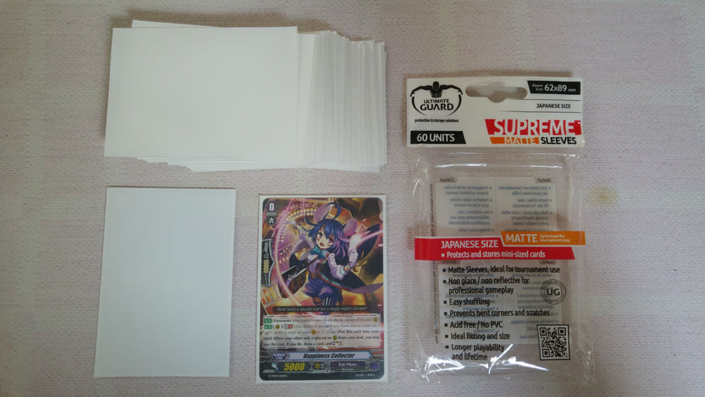 Kvalitní matné obaly od Ultimate guard, jsou dostatečně pevné a krásně se míchají. U bílé barvy lehounce prosvítá zadní část karty, což může být nevýhoda, mne to však nevadí. Použito na Cardfight! Vanguard. Obaly splnily požadavky i účel.