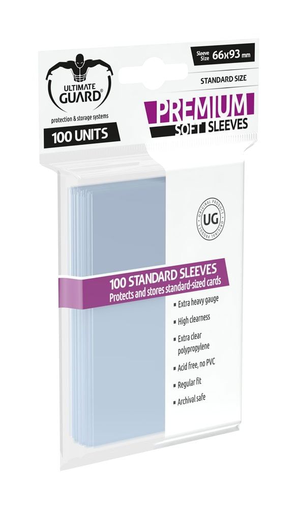 Sada 100 ks obalov na karty značky Ultimate Guard Premium Soft Sleeves, vhodné pre hry Magic the Gathering, Word of Warcraft TCG a ďalšie.