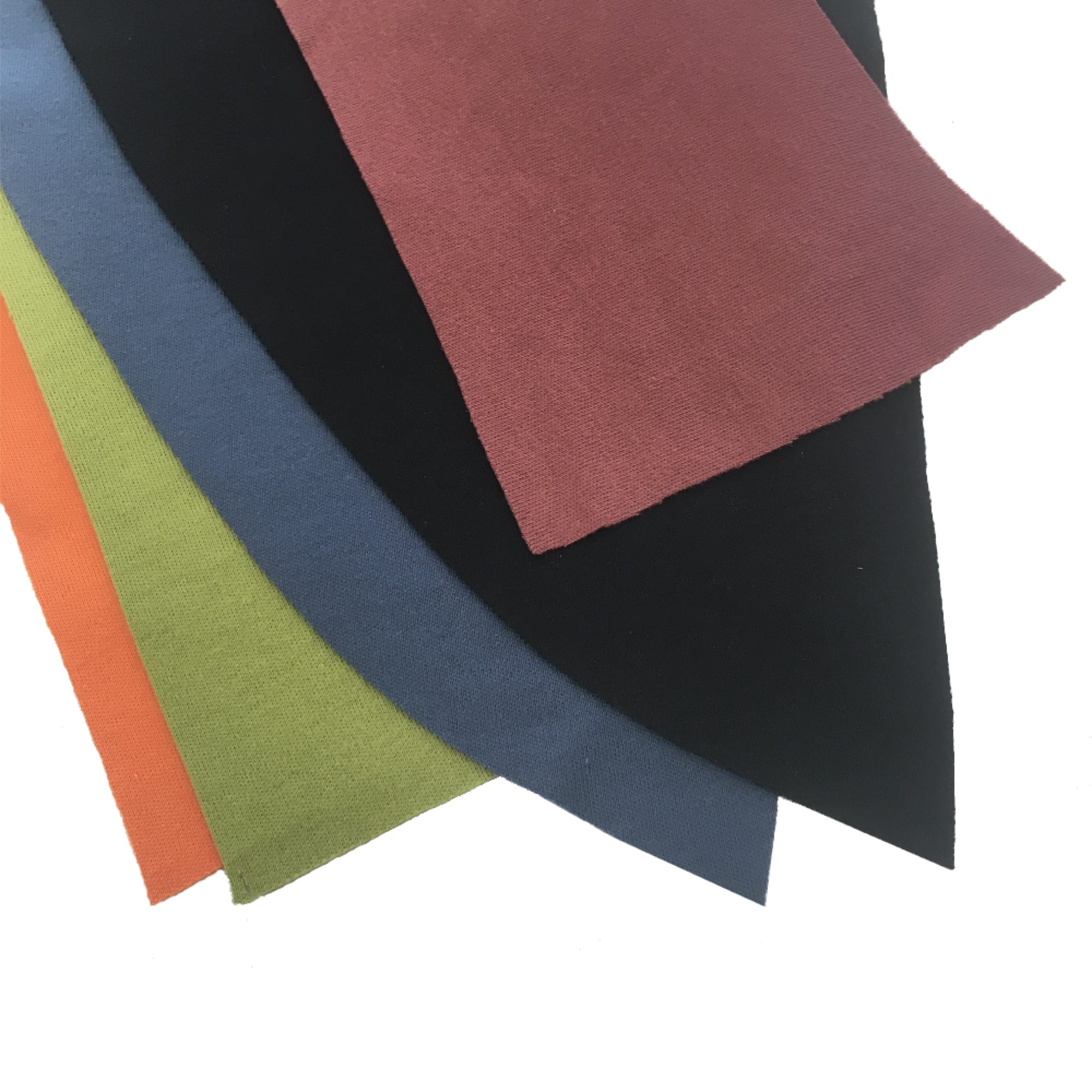 Farby sú náhodné, pretože nám zostávajú po výrobe mikín. Môže sa vyskytovať mix farieb: čierna, škoricová, zelená, modrá a oranžová. Materiál je jediný: úplet zo 100 % organickej bavlny. Je to elastická látka, ktorú používame na výrobu našich mikín. Látka je obojstranná a pri strihaní sa netrhá.