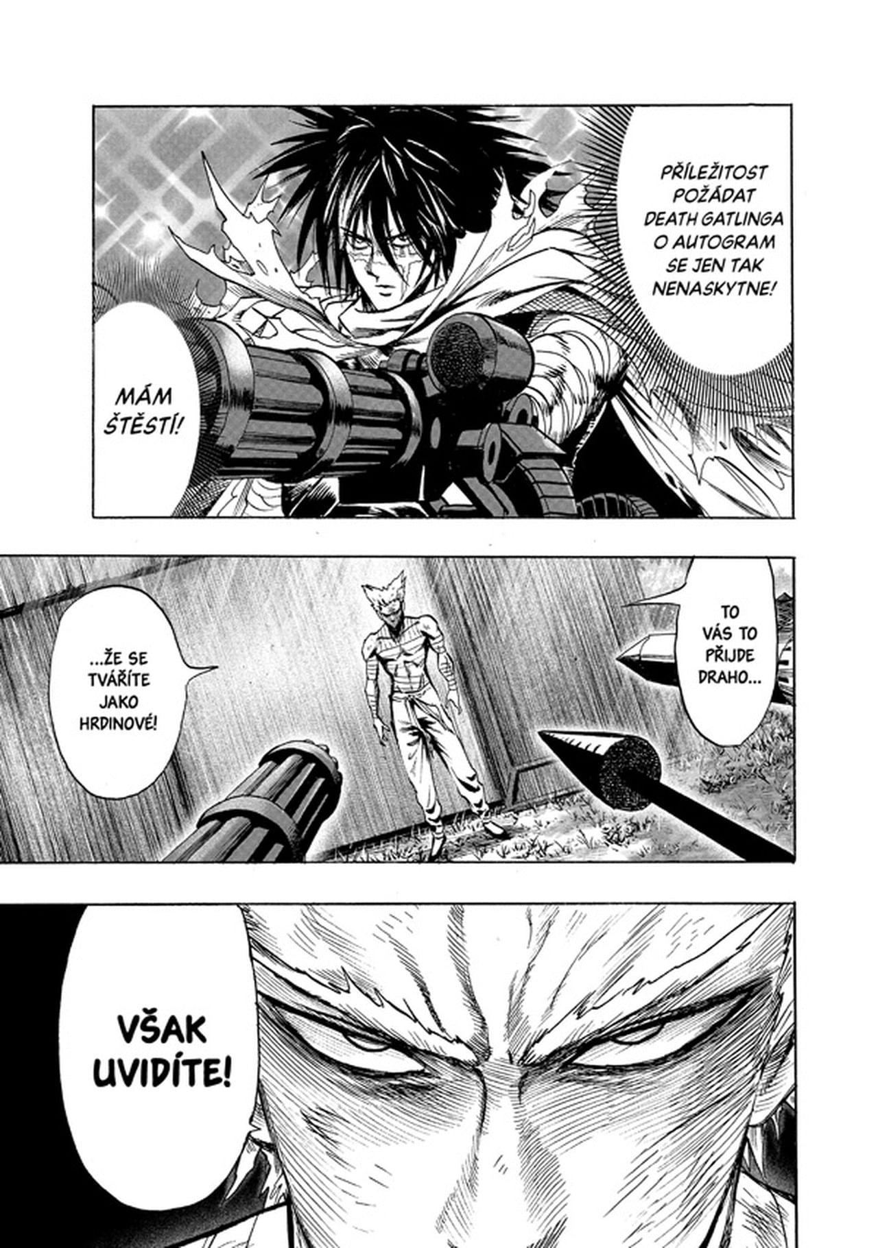 Keď Garóa obkľúčia hrdinovia, ocitá sa v ťažkej situácii. Ale vďaka svojej neuveriteľnej sile poráža hrdinov v presile jedného po druhom, kým sa na scéne neobjaví Genos.