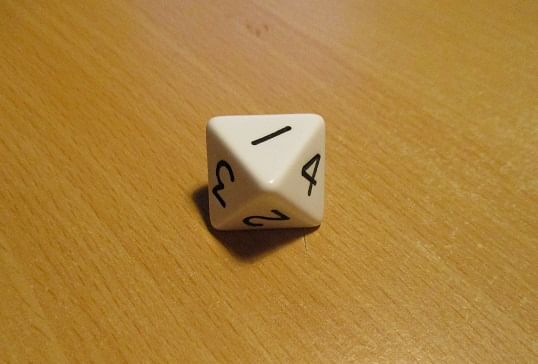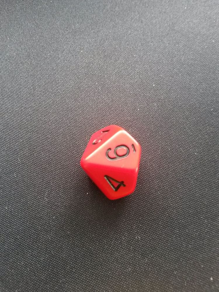Klasická osemstenný kocka s číslami 1-4, môže nahradiť klasickú štvorstennou kocku, ktorá je pre hádzanie trochu neohrabaná.
